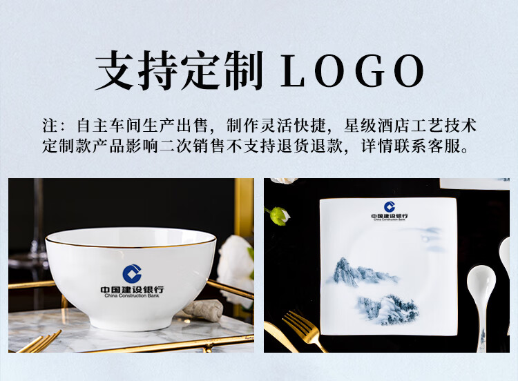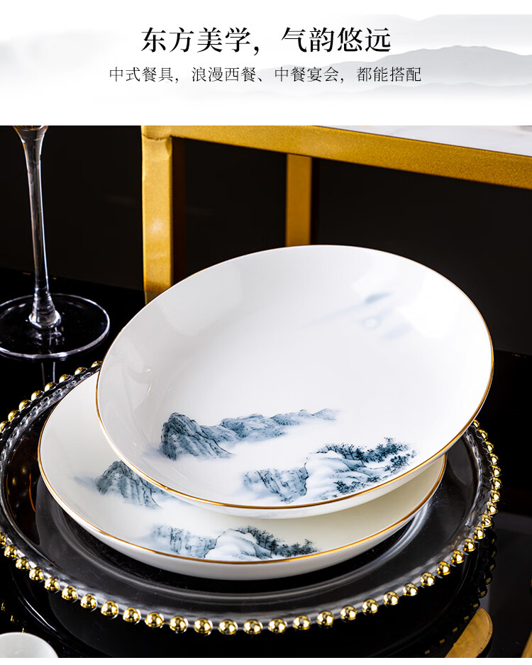 • 商品名称:陶相惠景德镇骨瓷家用餐具套装碗碟套装20头组合碗盘勺单位福利送礼 金边山水之间餐具20头/套