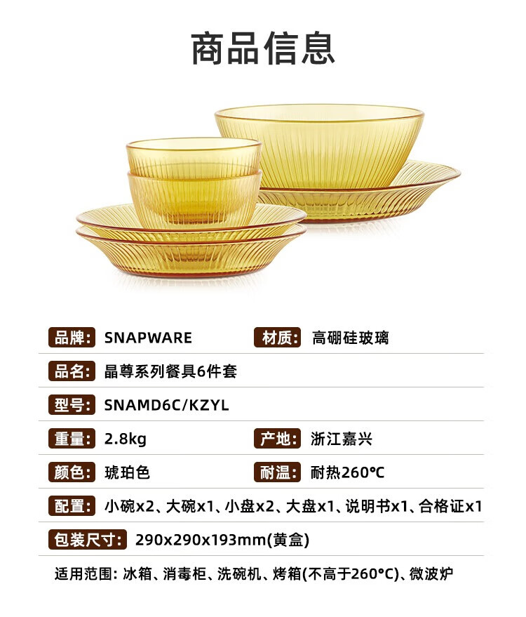 • 商品名称:康宁晶尊系列餐具 6件套(2个小碗1个大碗2个小盘1个大盘) 6件套(2个小碗1个大碗2个小盘1个大盘)/套