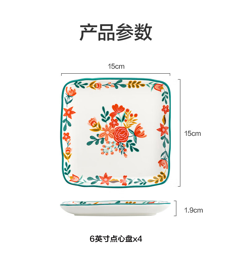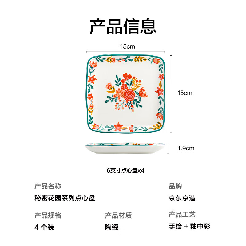 商品名称: 京东京造 美式餐具套装 盘子碟子乔迁之喜陶瓷家用 美式点心盘6英寸*4 JZ202302/套
