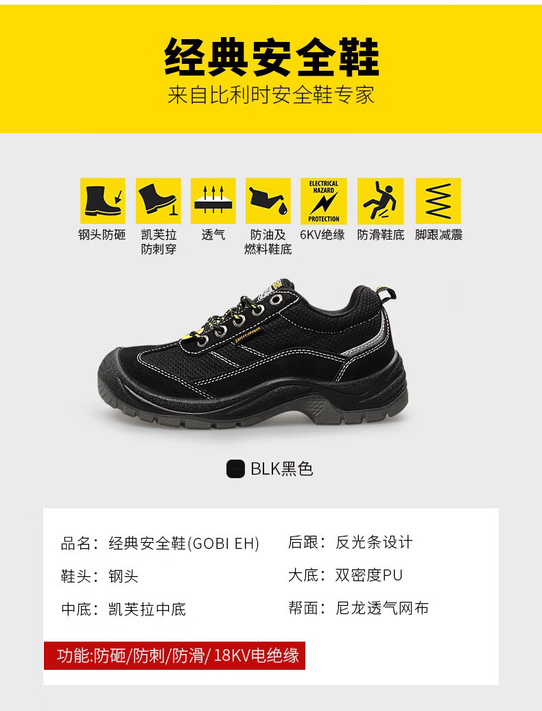 • 商品名称:SAFETY JOGGERS/鞍琸宜 GOBI-EH劳保鞋 防砸防刺穿绝缘鞋18KV安全鞋010836 黑色 38 GOBI-EH/双