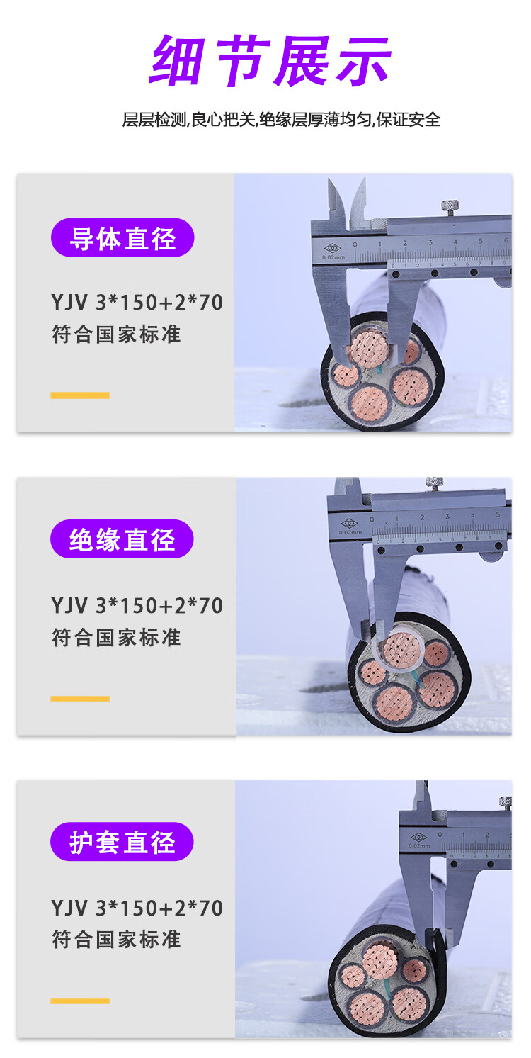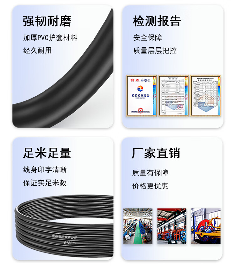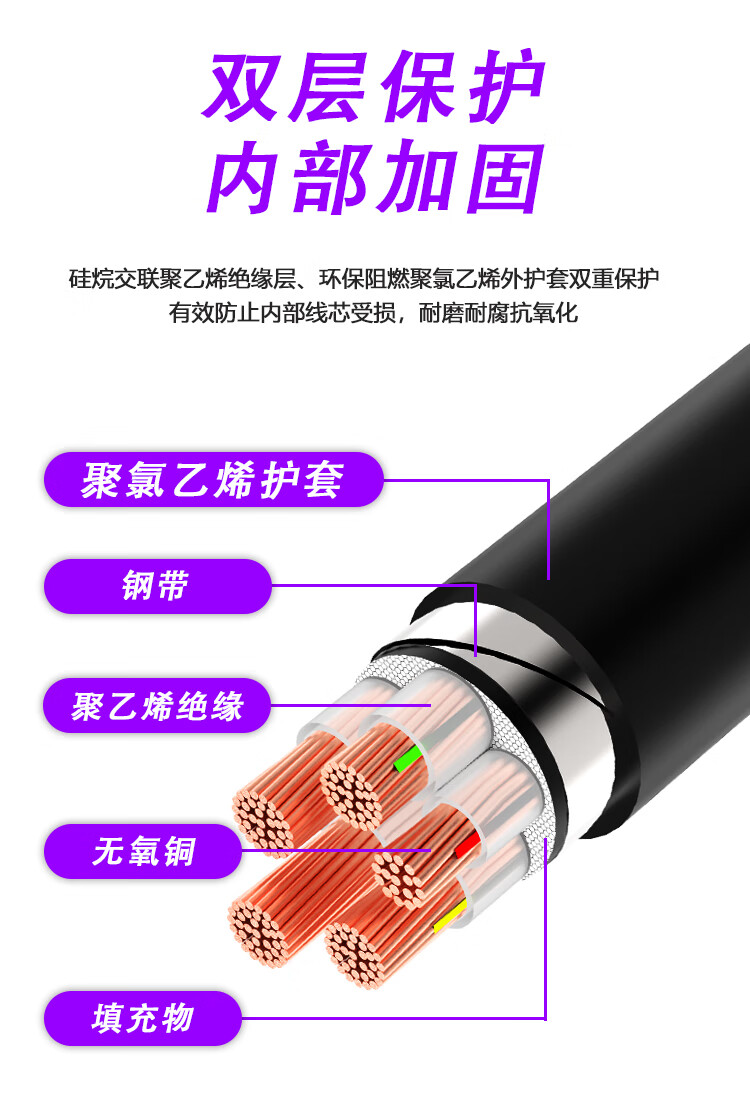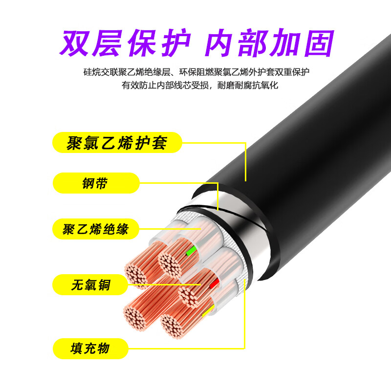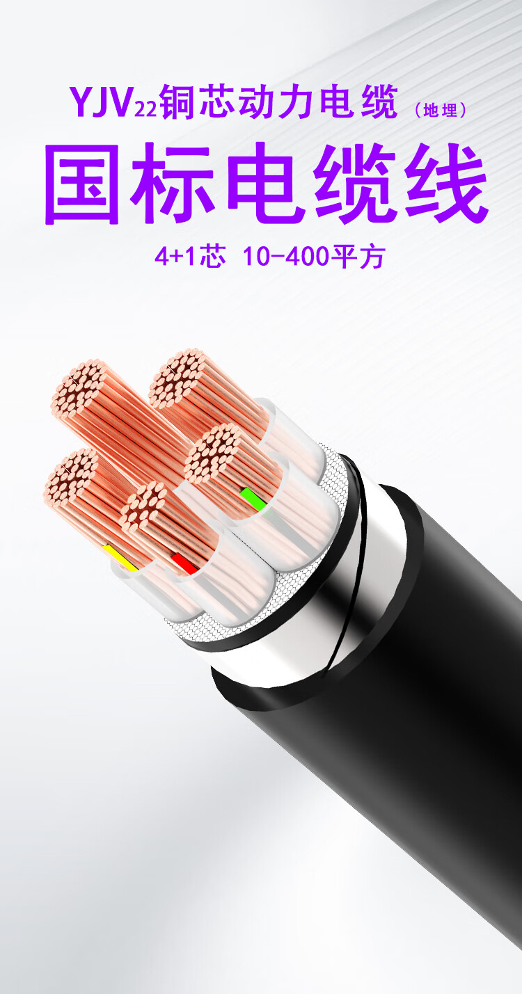 商品名称: 富国超群电线电缆线 YJV22 4*185+1*95平方国标地埋防老化4+1芯电力电缆 1米【现货】 YJV22-0.6/1KV-4*185+1*95-黑色 1m/米