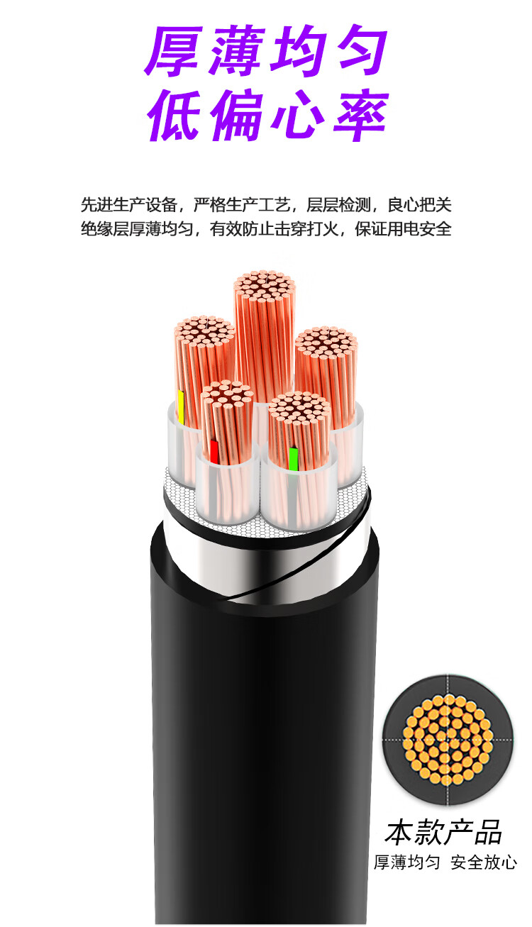 工业品  > 电线电缆  > 电力电缆  >  富国超群/FU QIANG CHAO QUN  >  富国超群电线电缆线 YJV22 4*185+1*95平方国标地埋防老化4+1芯电力电缆 1米【现货】 YJV22-0.6/1KV-4*185+1*95-黑色 1m/米