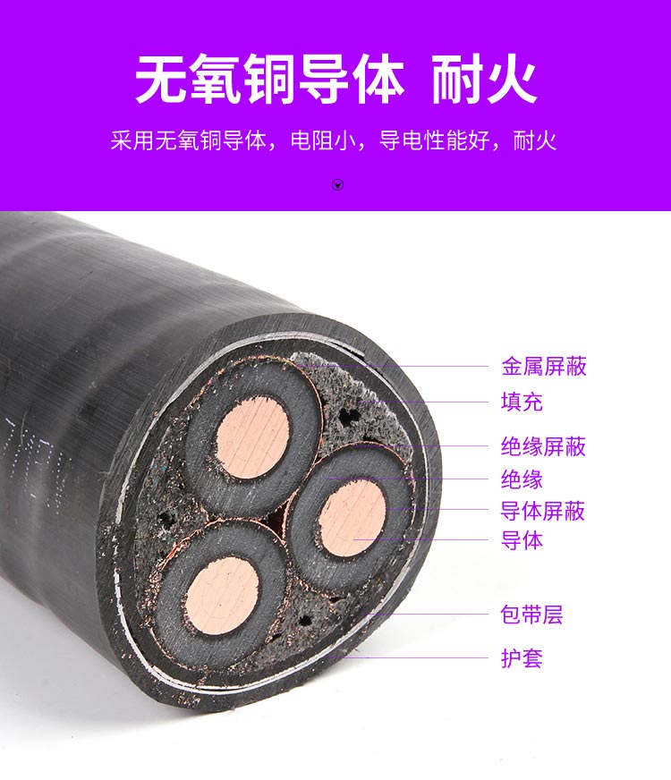 商品名称: 富国超群电缆电缆线ZC-YJV22-8.7/15KV-3*120平方铜芯铠装3芯阻燃高压交联电力电缆 YJV22-8.7/15KV-3*120-黑色 1m/米