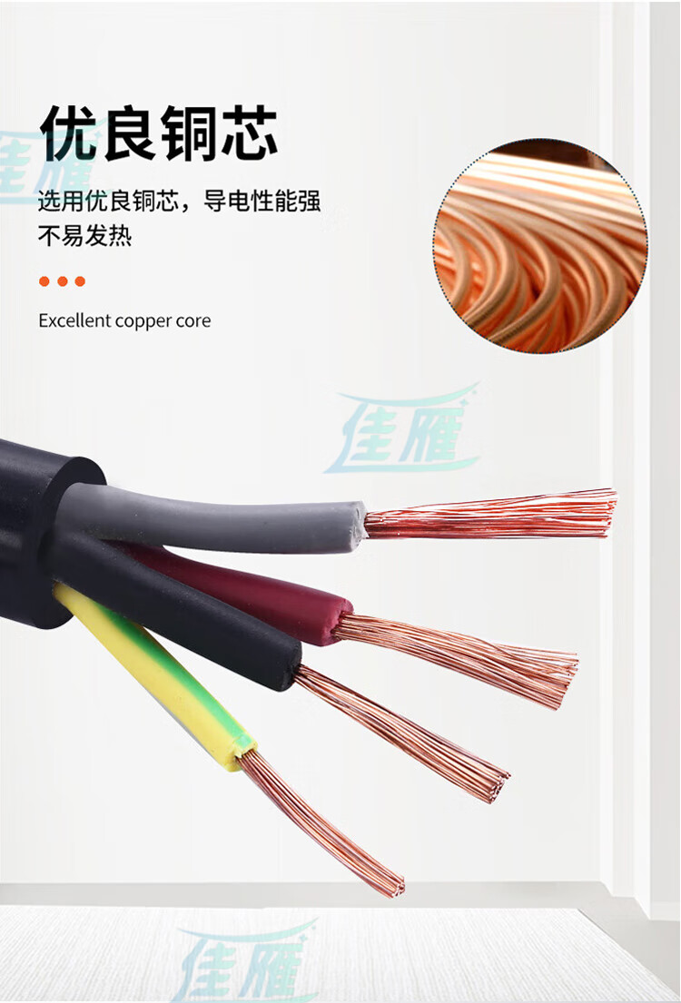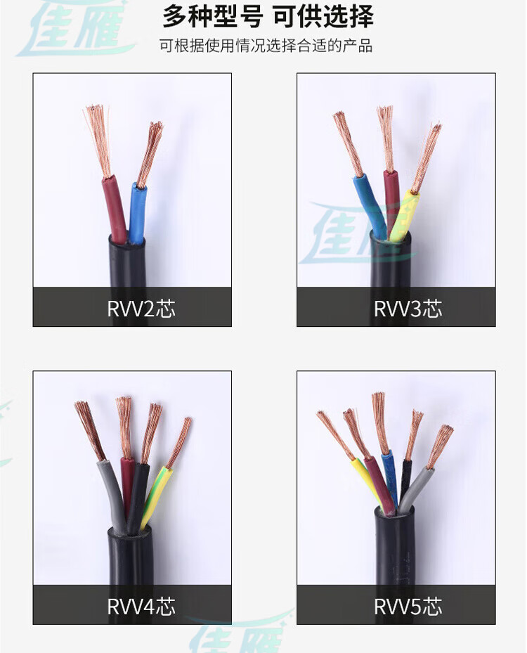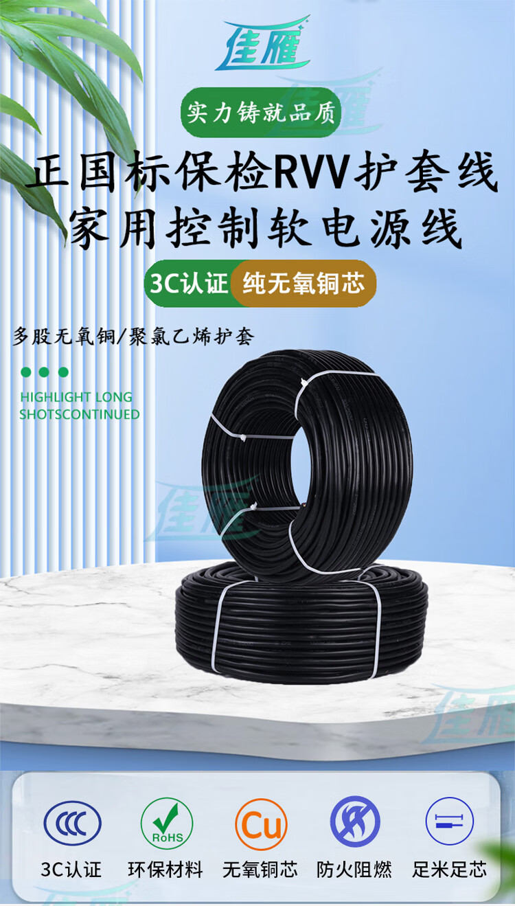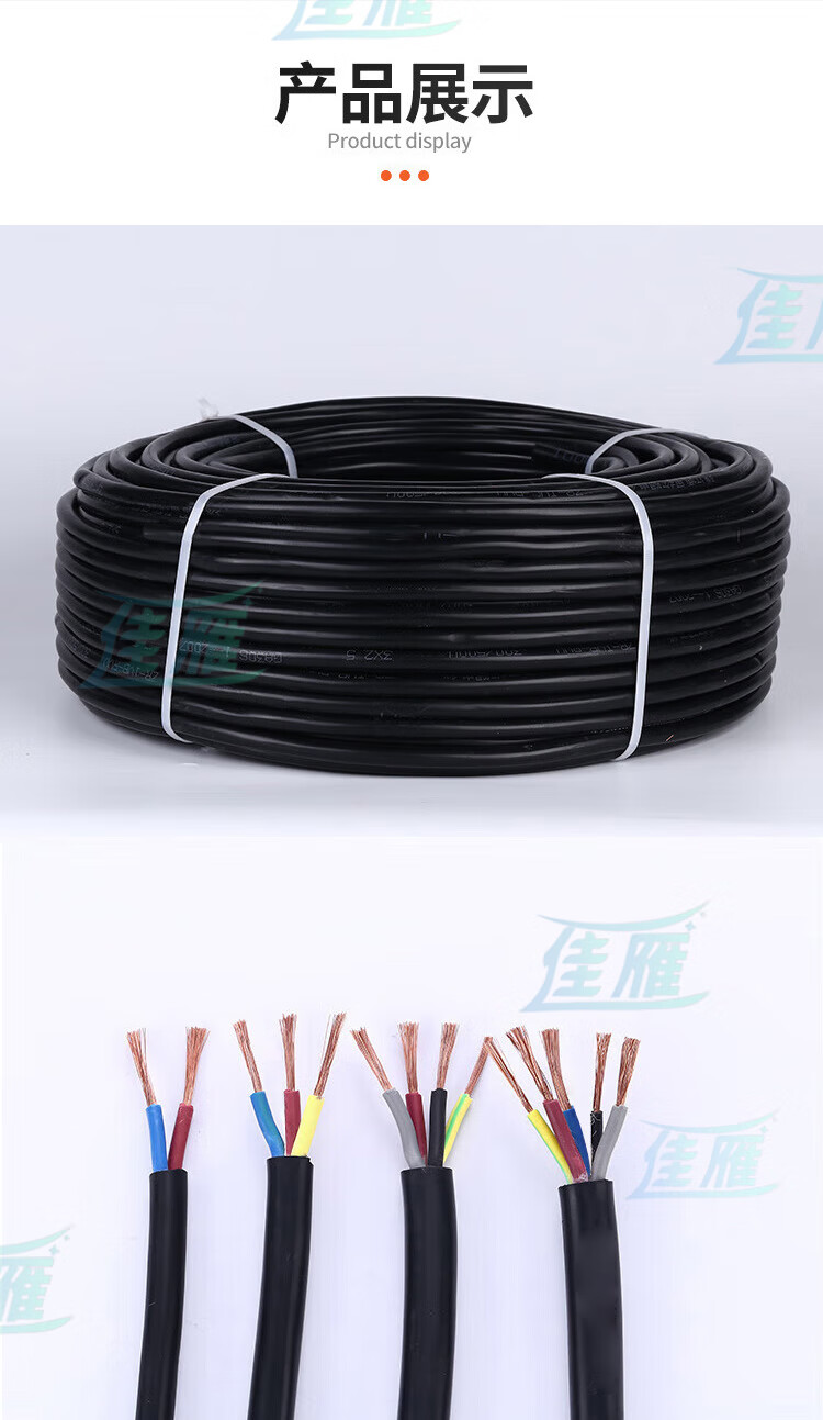 • 商品名称:佳雁电线电缆RVV 3*4平方国标阻燃三芯电源线户外多股铜丝软护套线1米 3*4 RVV/米