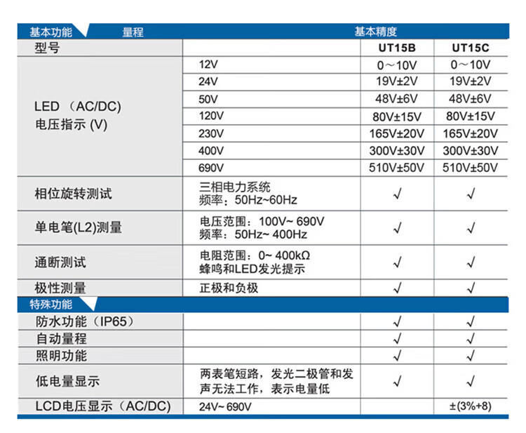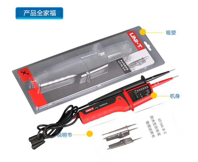 • 商品名称:优利德(UNI-T)UT15C 防水型测电笔 万用表试电笔 多功能验电笔 LCD电压数值显示 UT15C/台