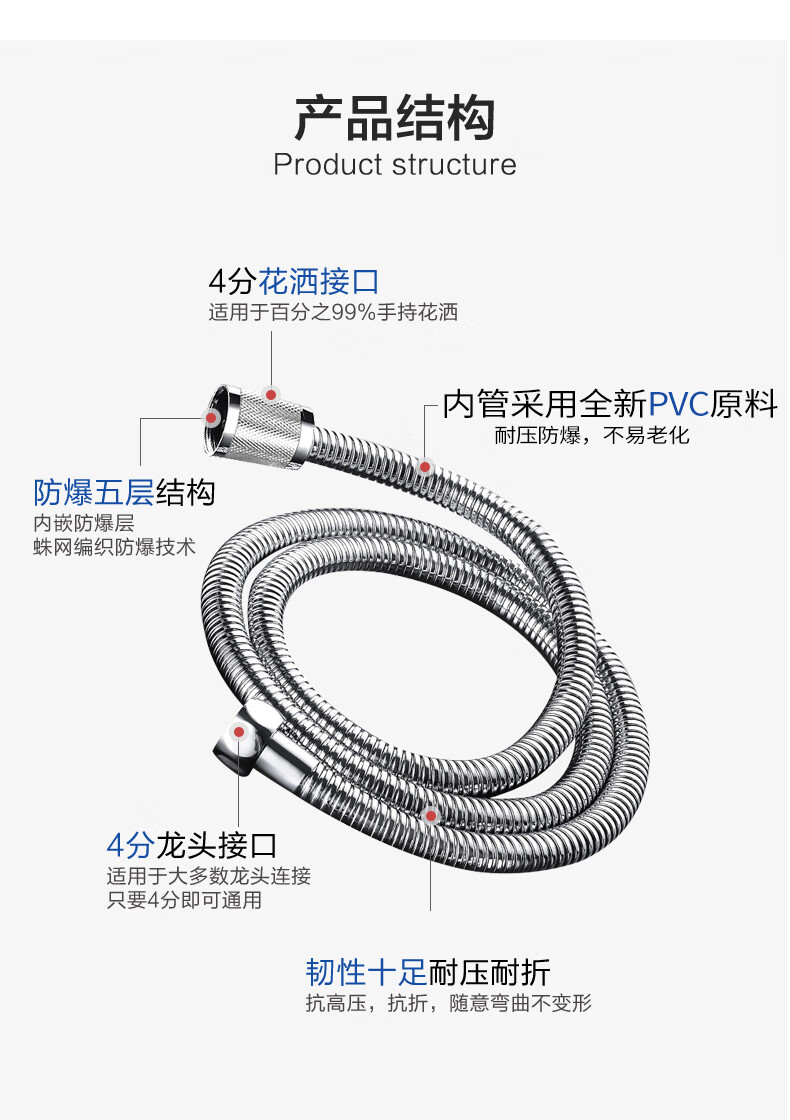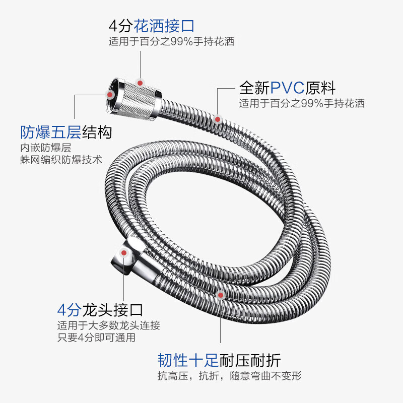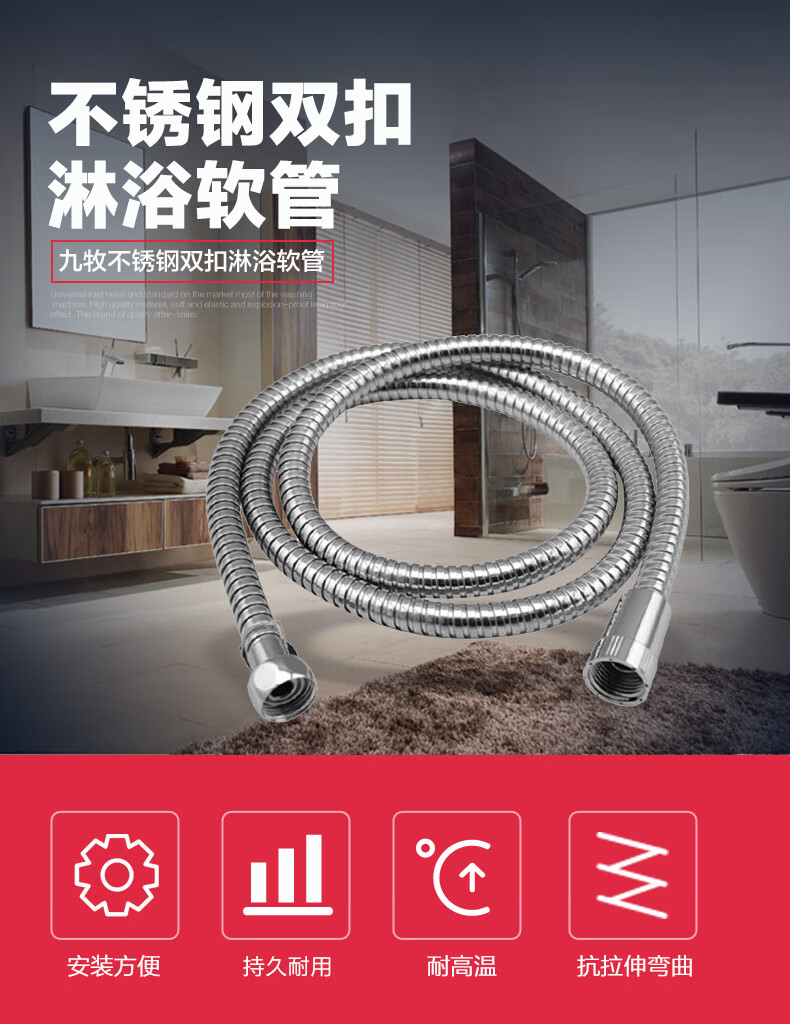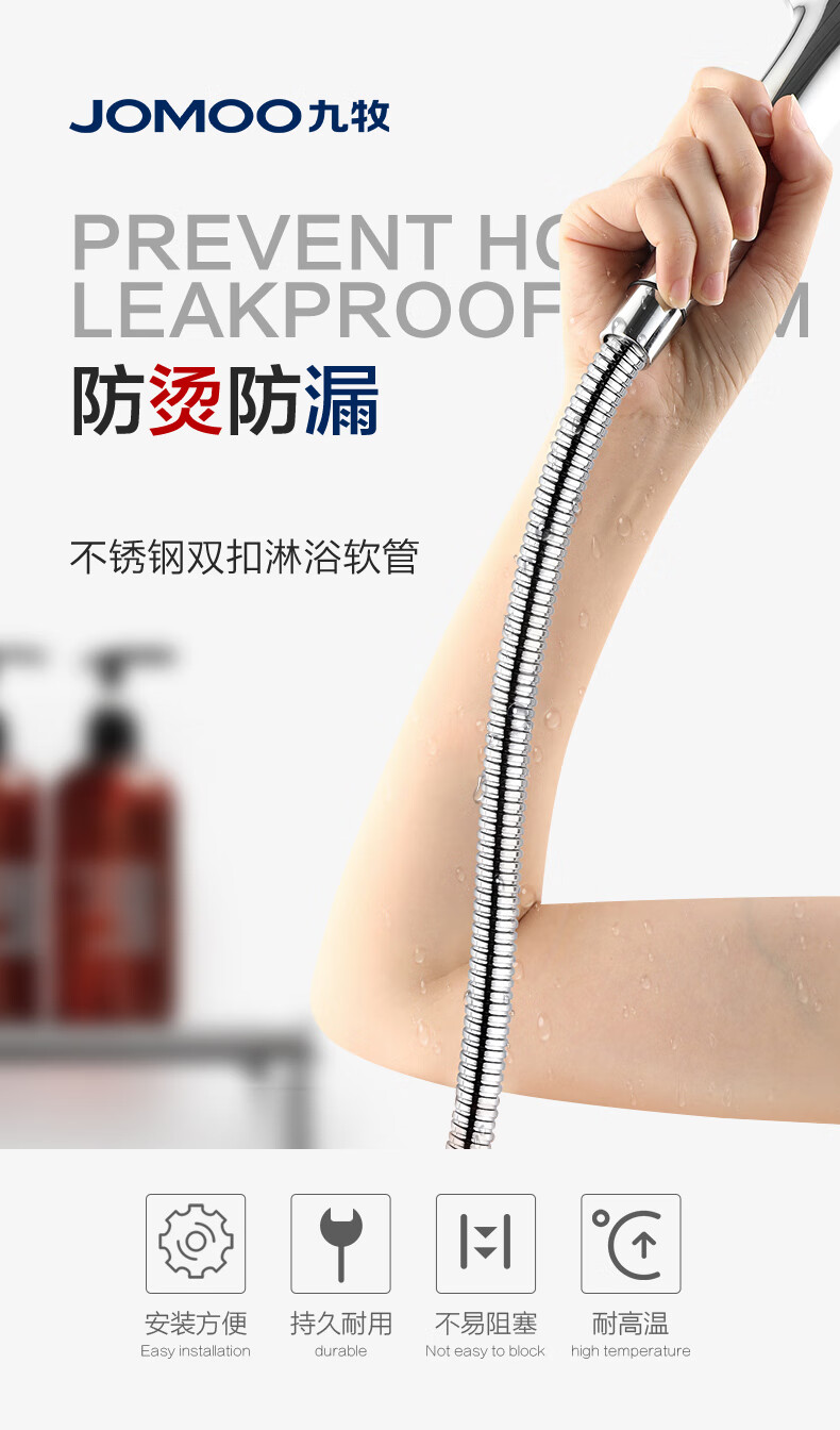 商品名称: 九牧(JOMOO)不锈钢上水头编织软管花洒耐热防爆淋浴软管1.5米H2BE2-150103C-2 H2BE2-150103C-2/条