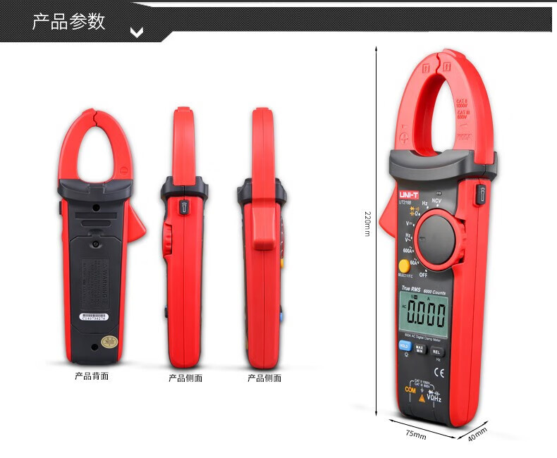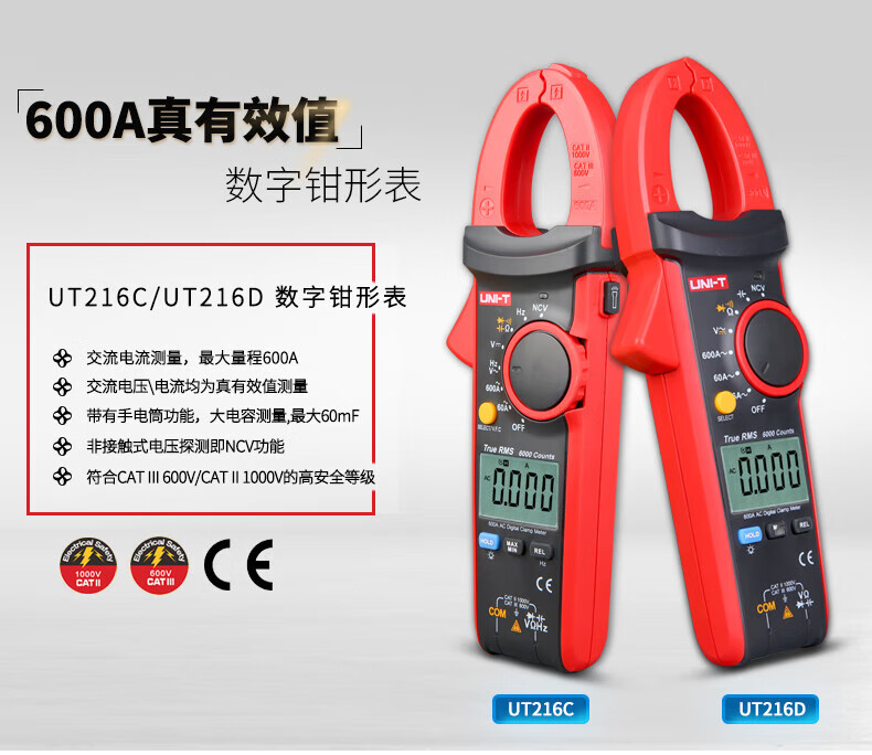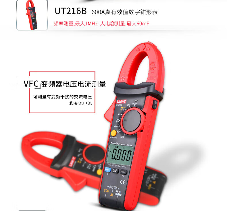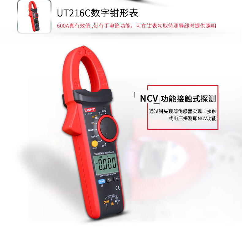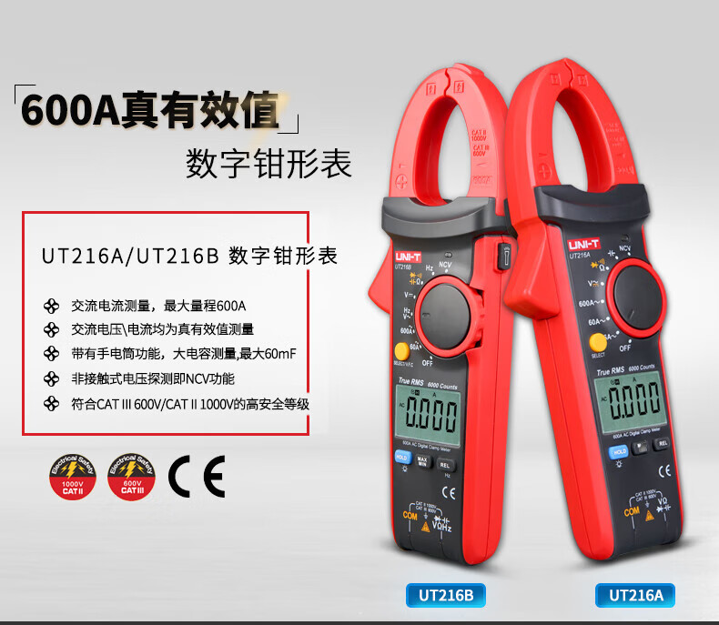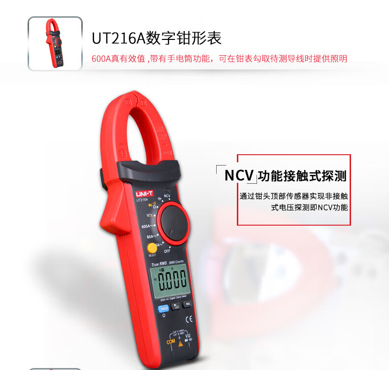 • 商品名称:优利德(UNI-T)UT216A 数字钳形表 钳形万用表 交流600A 真有效值 自动量程 钳表 电流表 UT216A/台