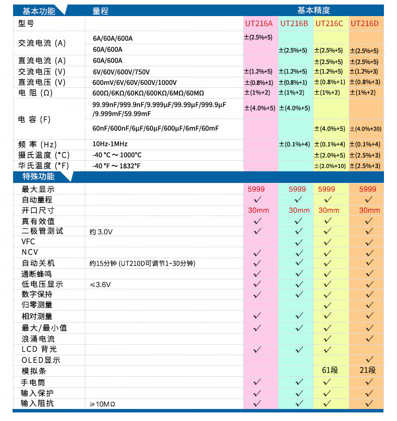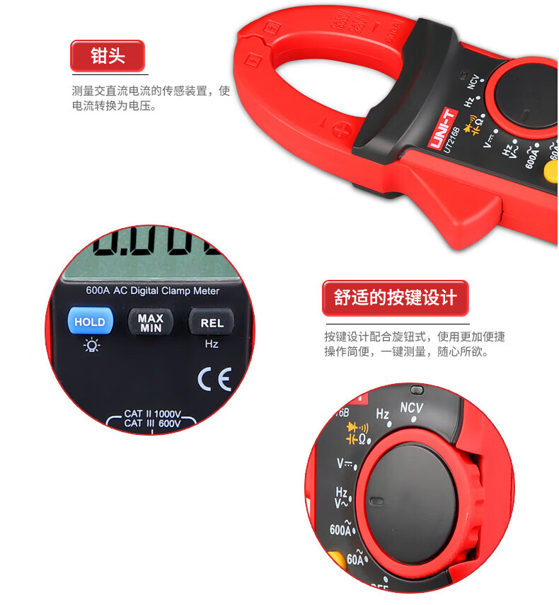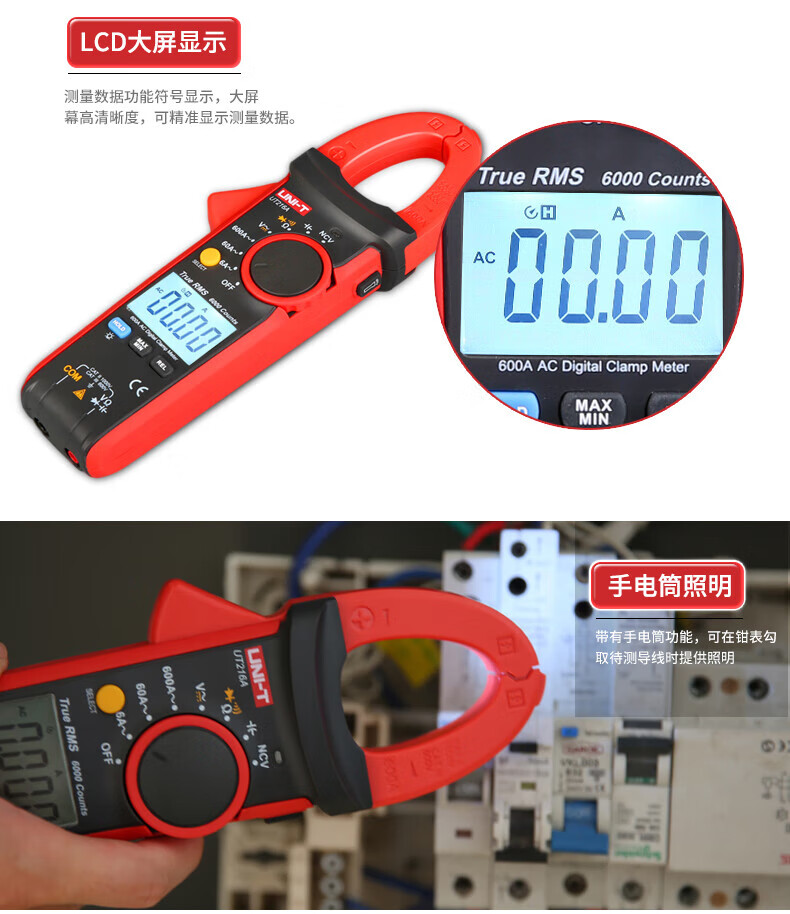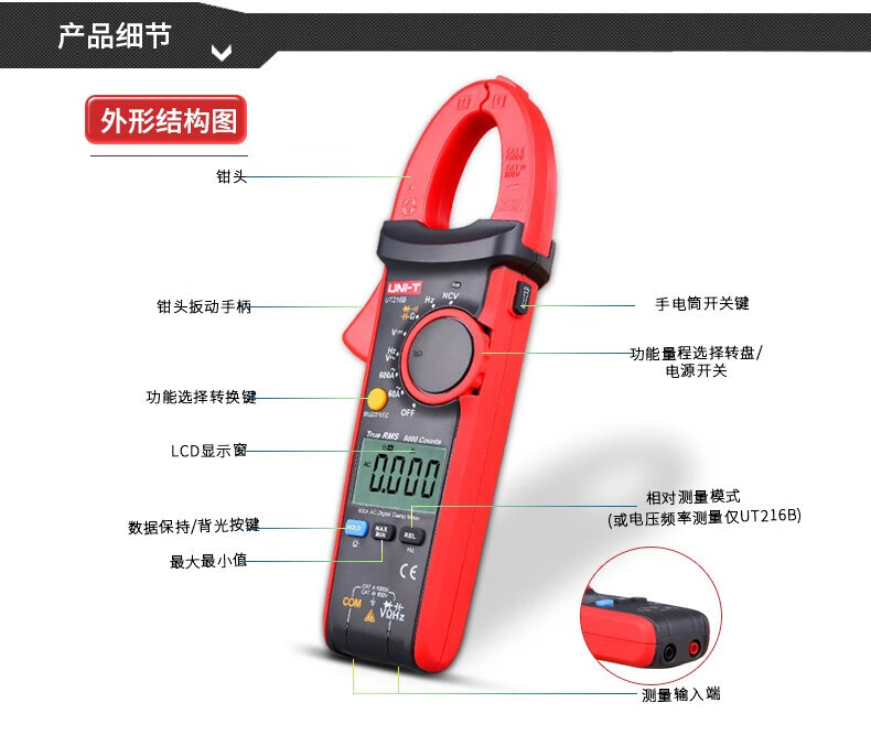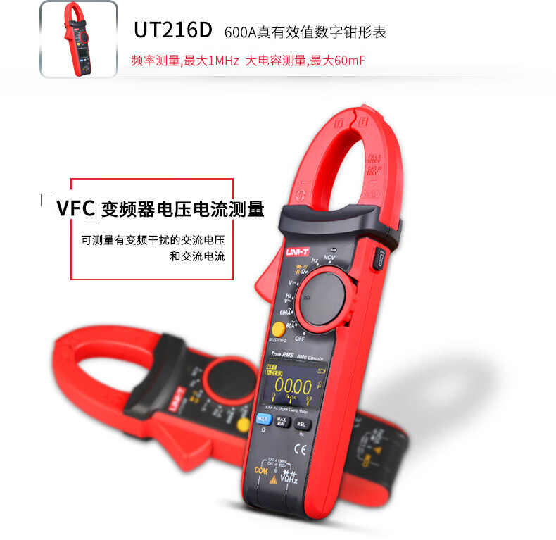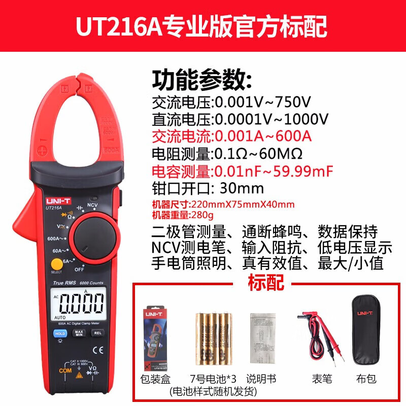 • 商品名称:优利德(UNI-T)UT216A 数字钳形表 钳形万用表 交流600A 真有效值 自动量程 钳表 电流表 UT216A/台