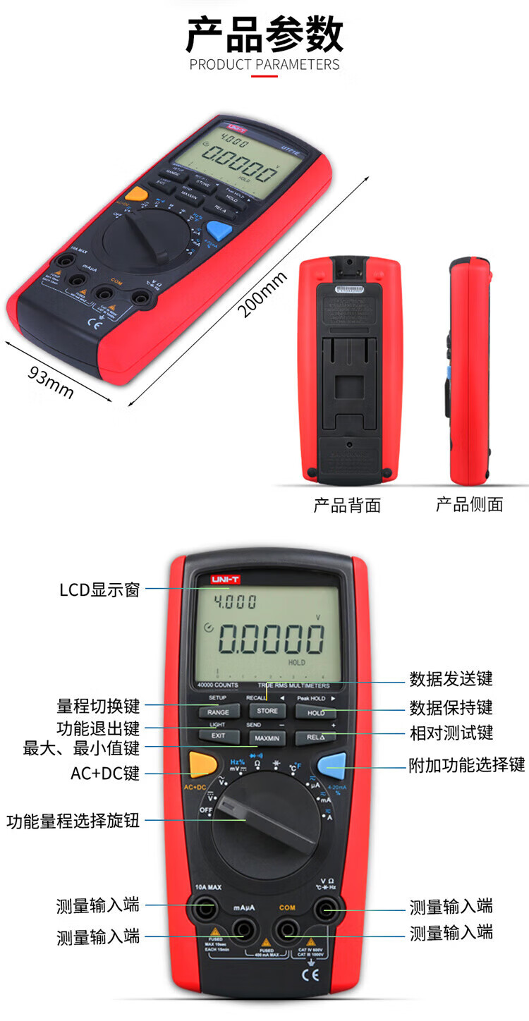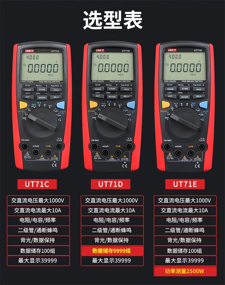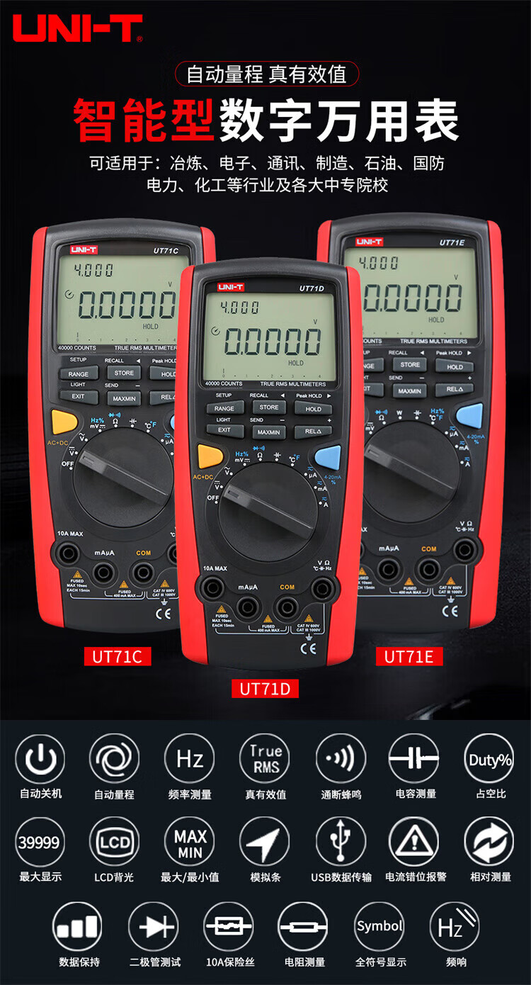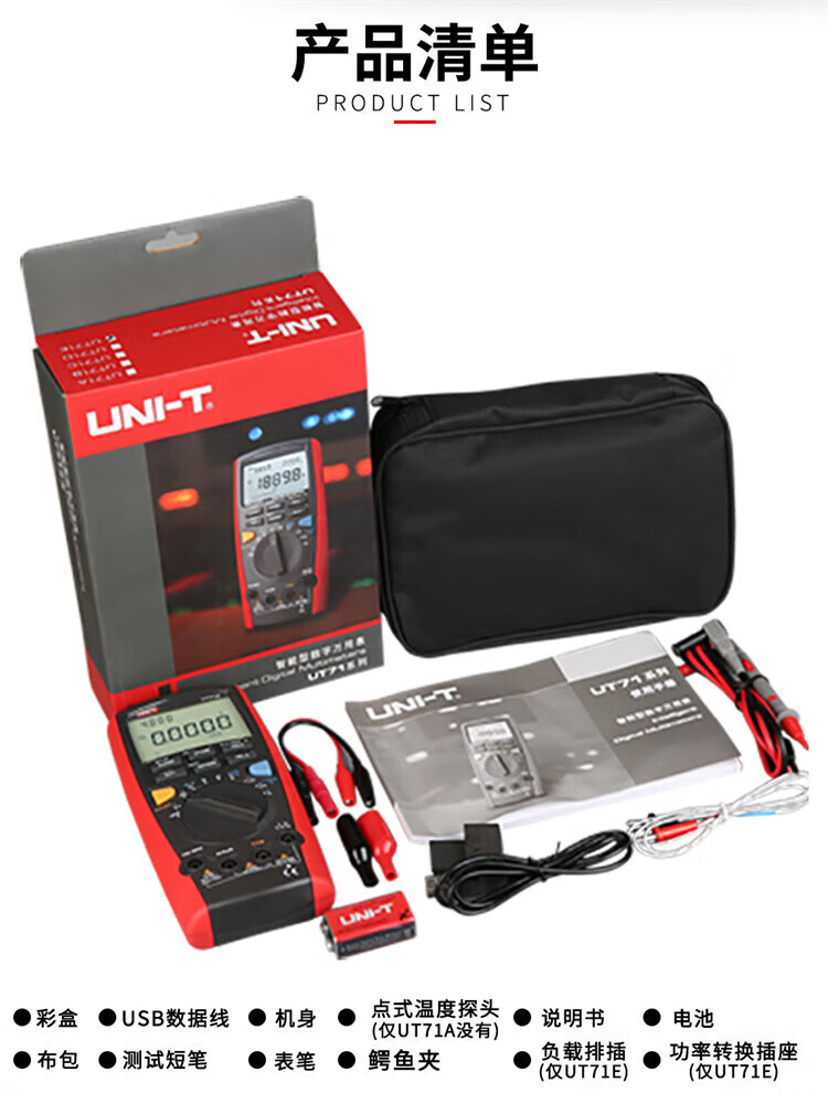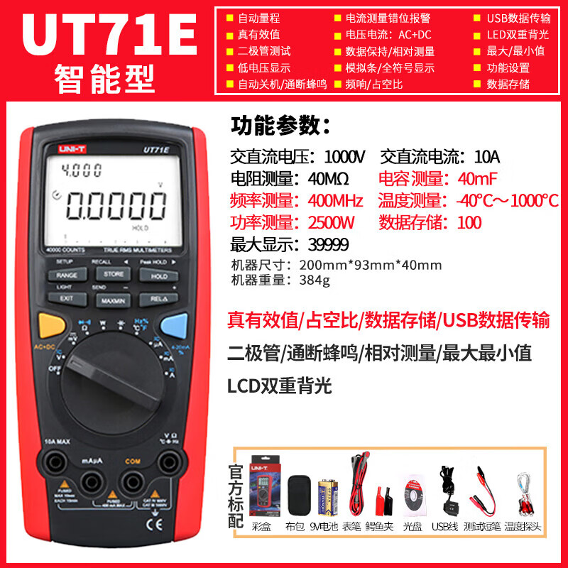 • 商品名称:优利德(UNI-T)UT71E 智能数字万用表 四位半高精度万能表 电工表 多用表 UT71E/台