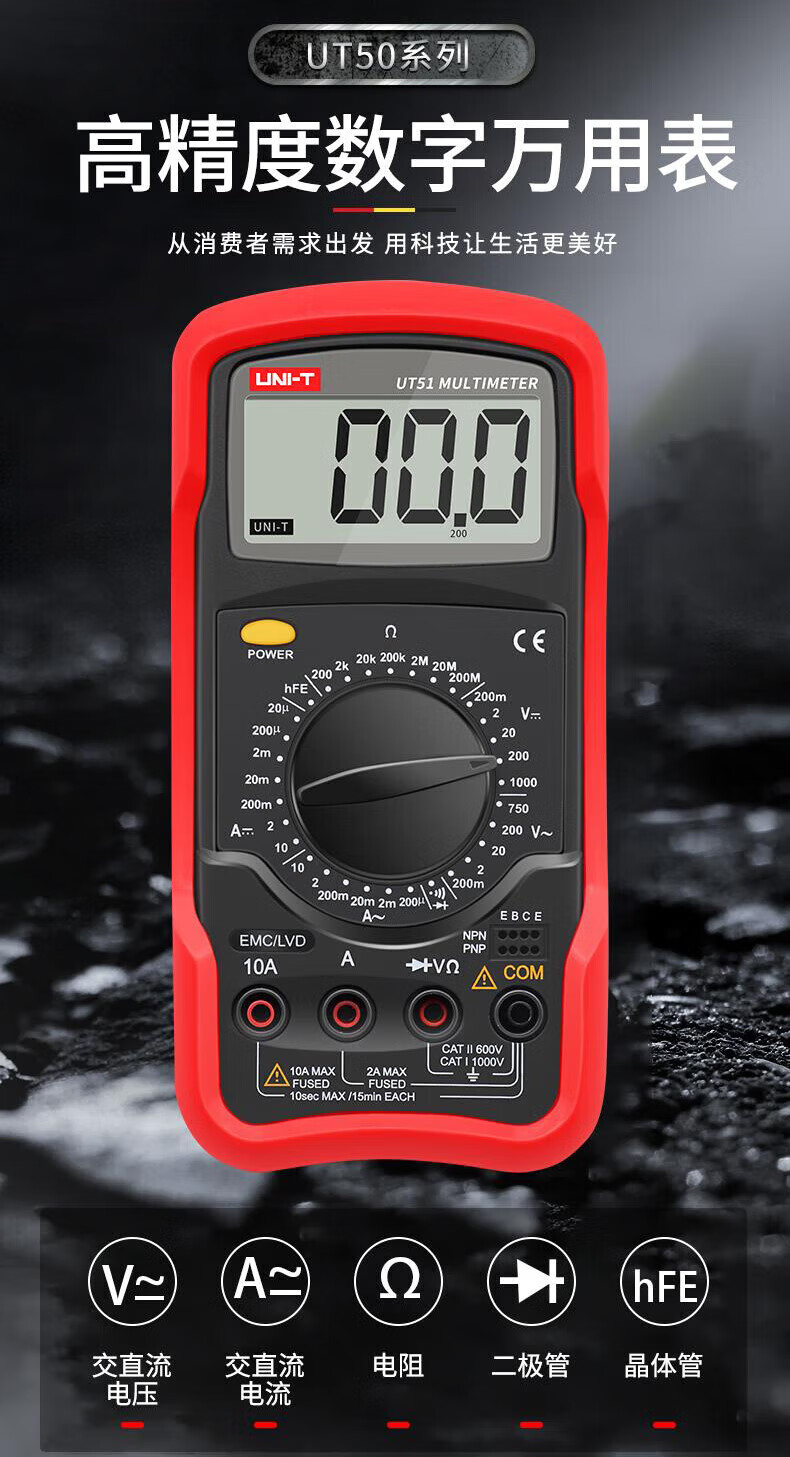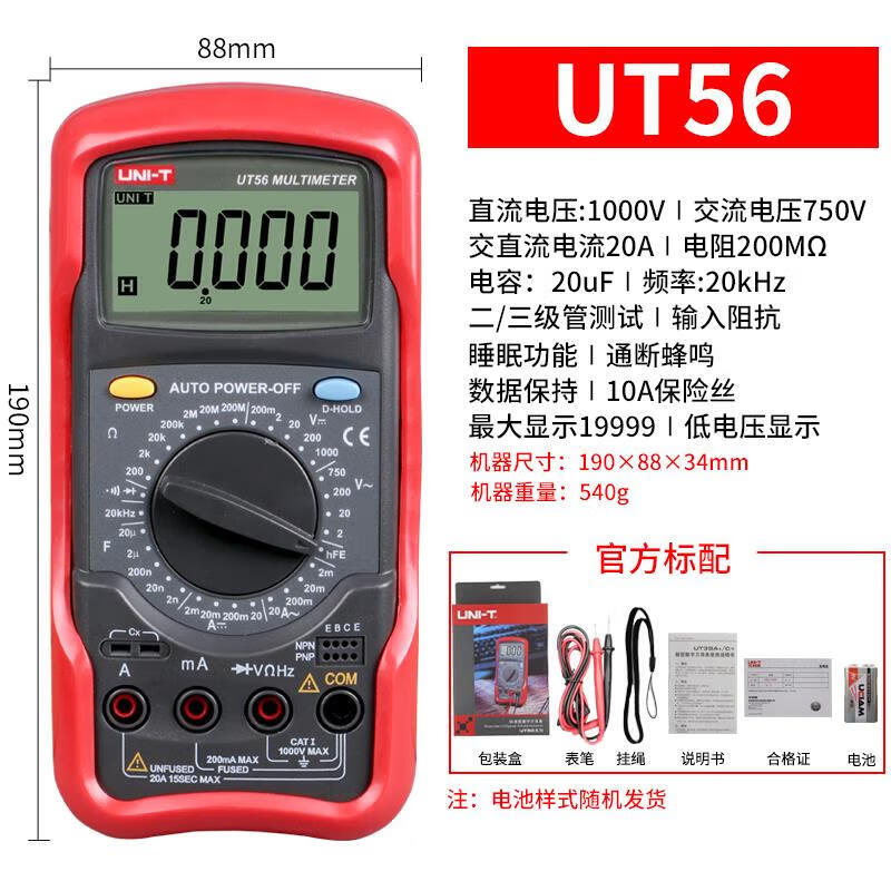 工业品  > 仪器仪表  > 电工仪表  >  优利德  >  优利德(UNI-T)UT56 数字万用表 万能表 四位半高精度 手持式多功能 小型电工多用表 UT56/台