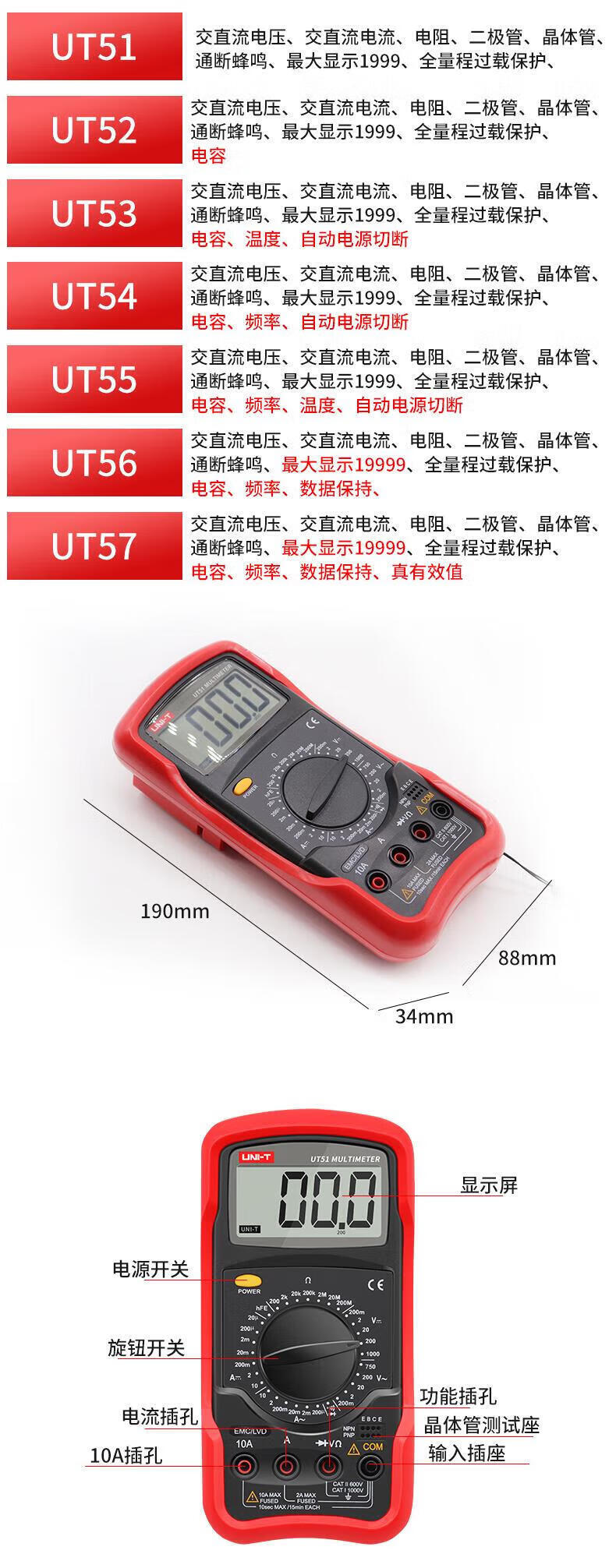 商品名称: 优利德(UNI-T)UT56 数字万用表 万能表 四位半高精度 手持式多功能 小型电工多用表 UT56/台