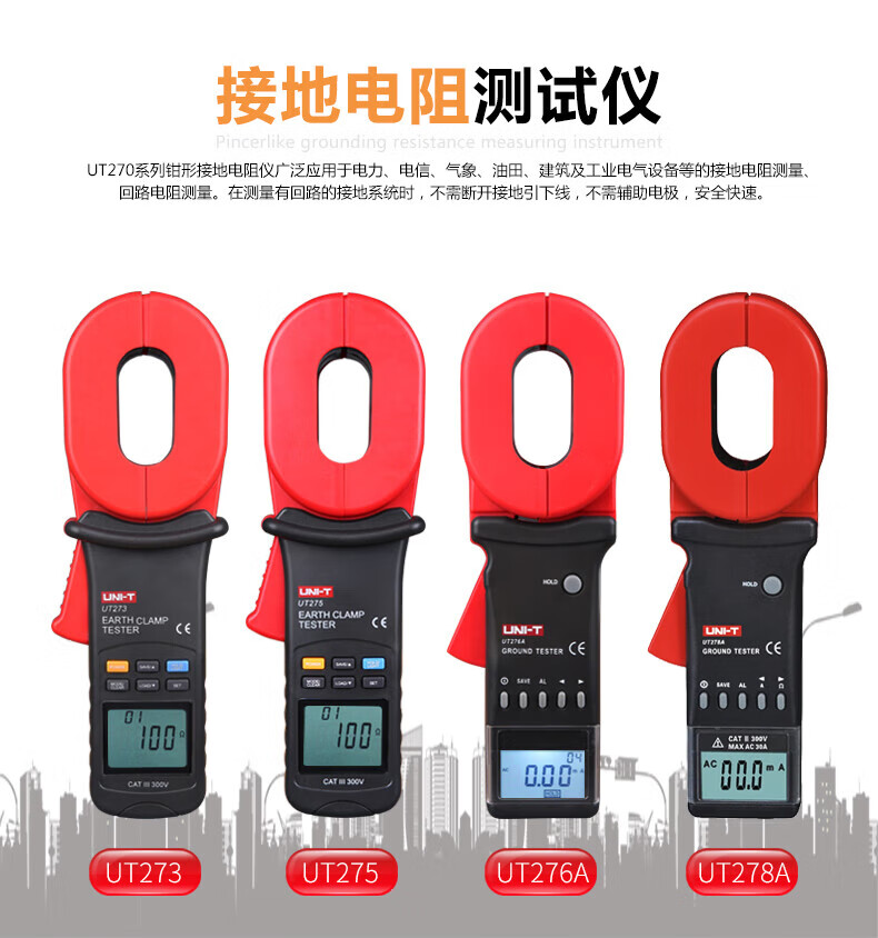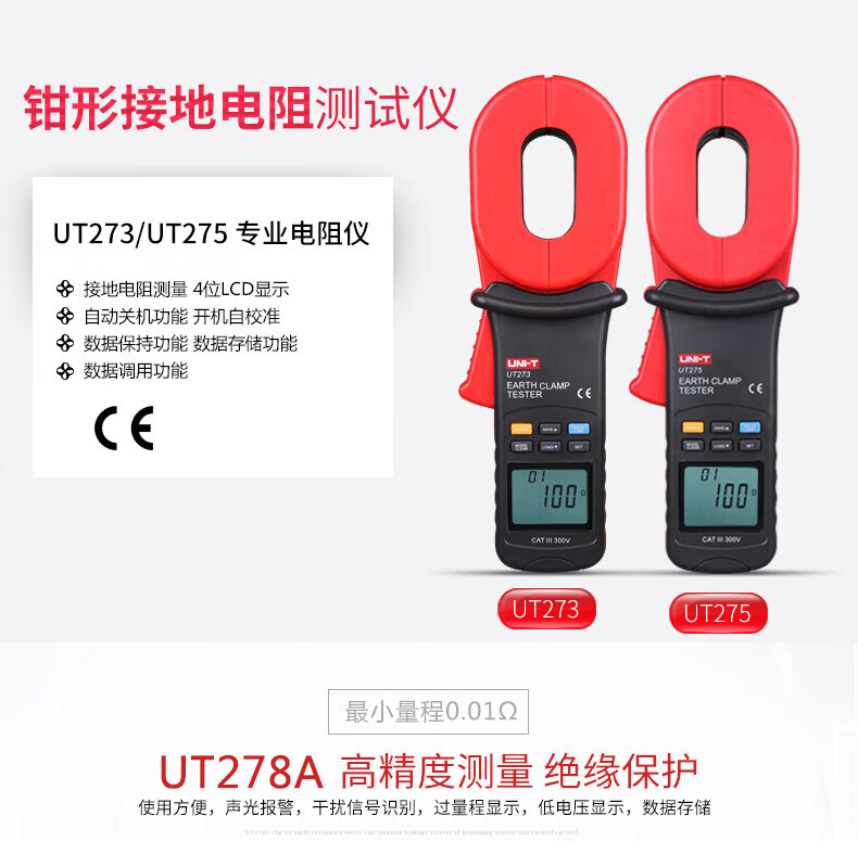 商品名称: 优利德(UNI-T)UT273 钳形接地电阻测试仪 回路电阻测试仪 UT273/台