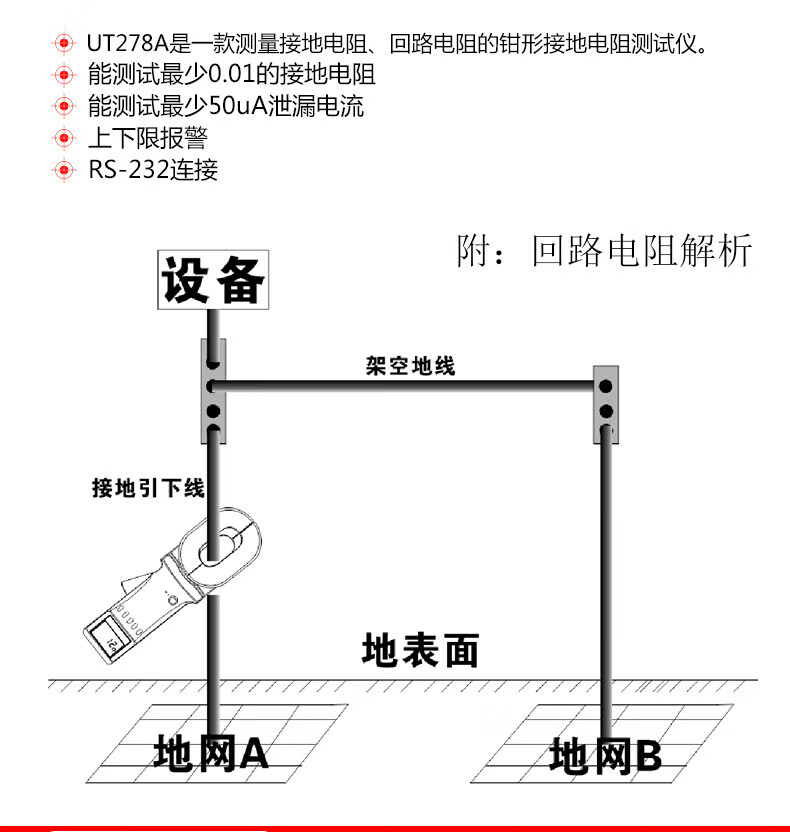 • 商品名称:优利德(UNI-T)UT273 钳形接地电阻测试仪 回路电阻测试仪 UT273/台