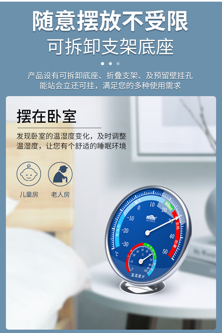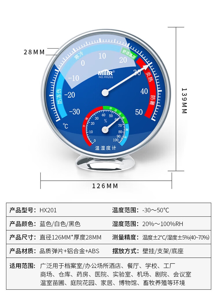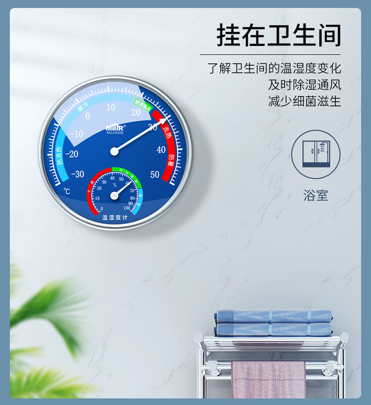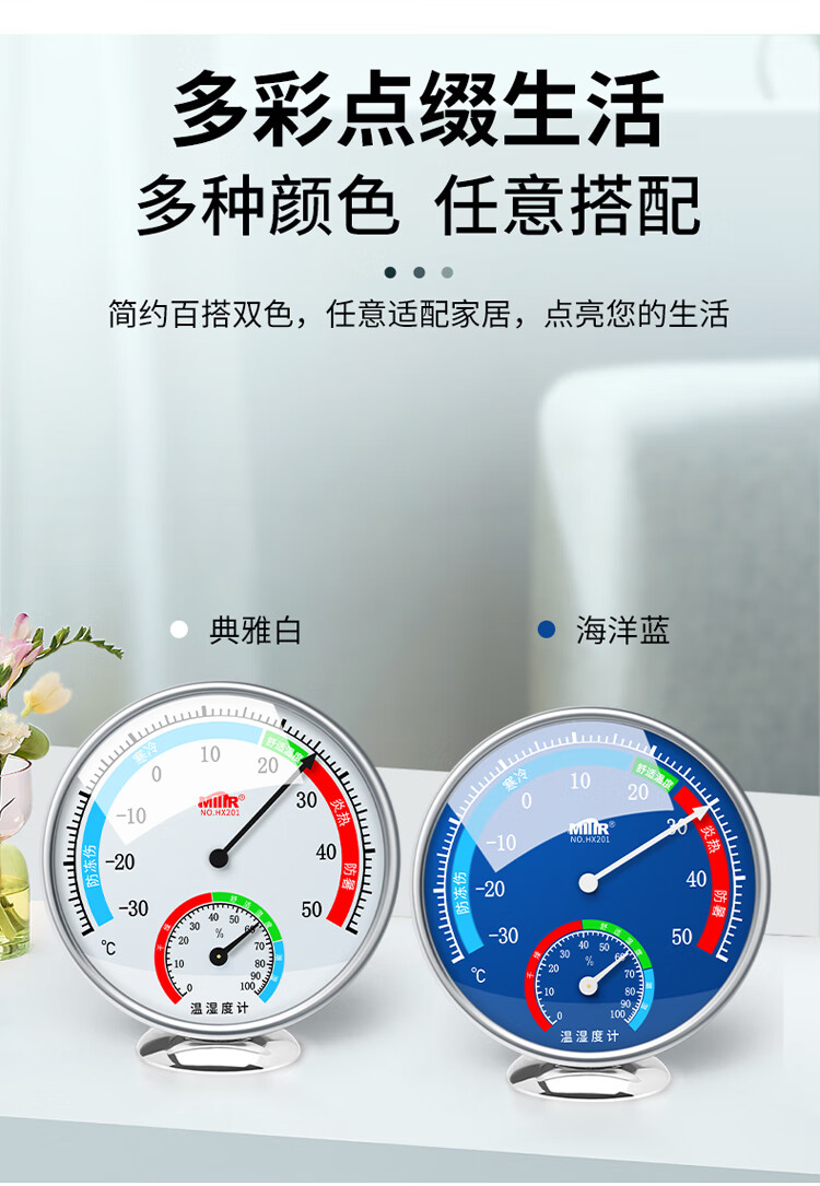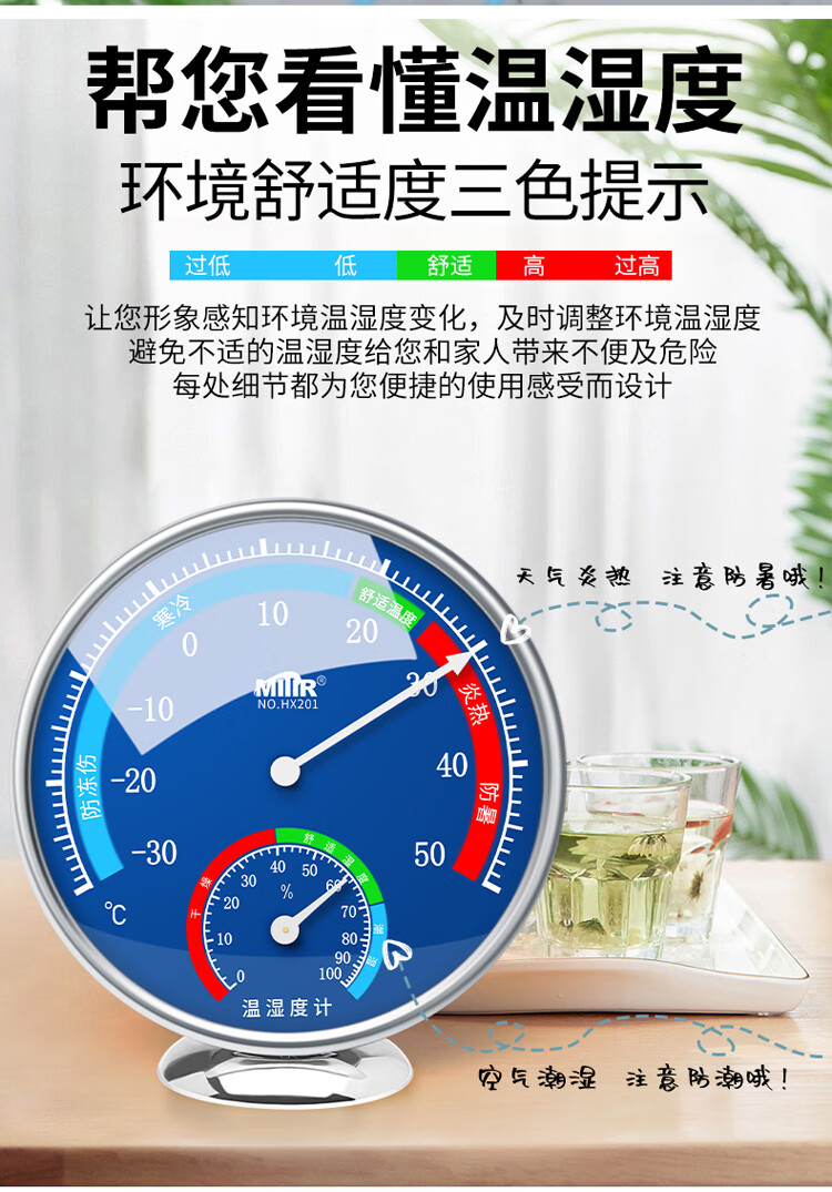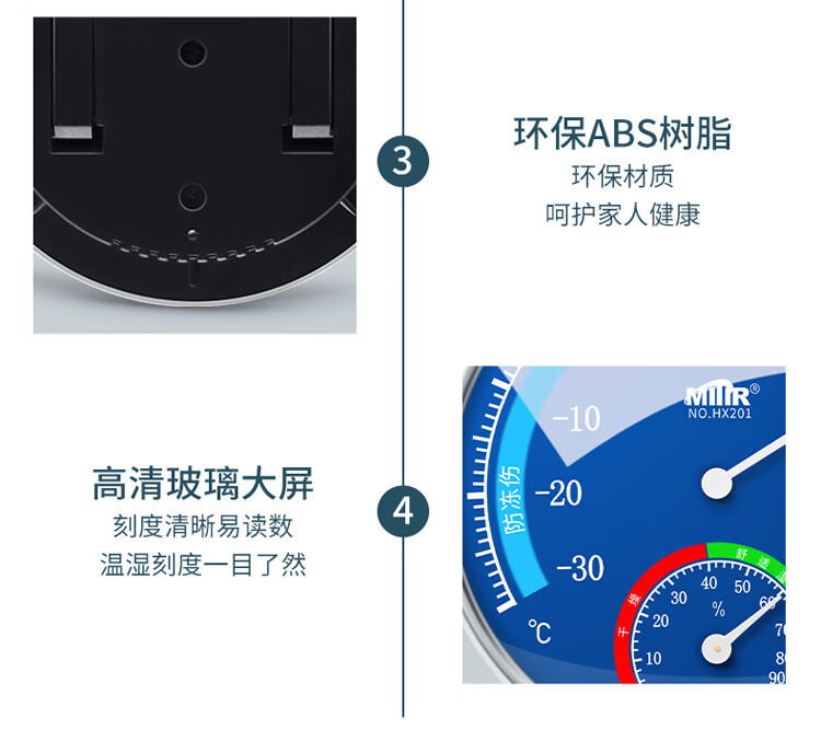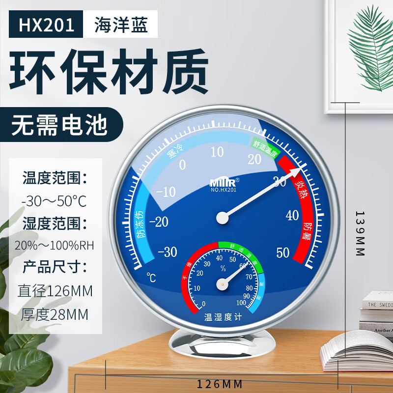 商品名称: MITIR温度计室内家用温度湿度计大棚养殖温度表婴儿房大表盘 HX201蓝 HX201蓝/个