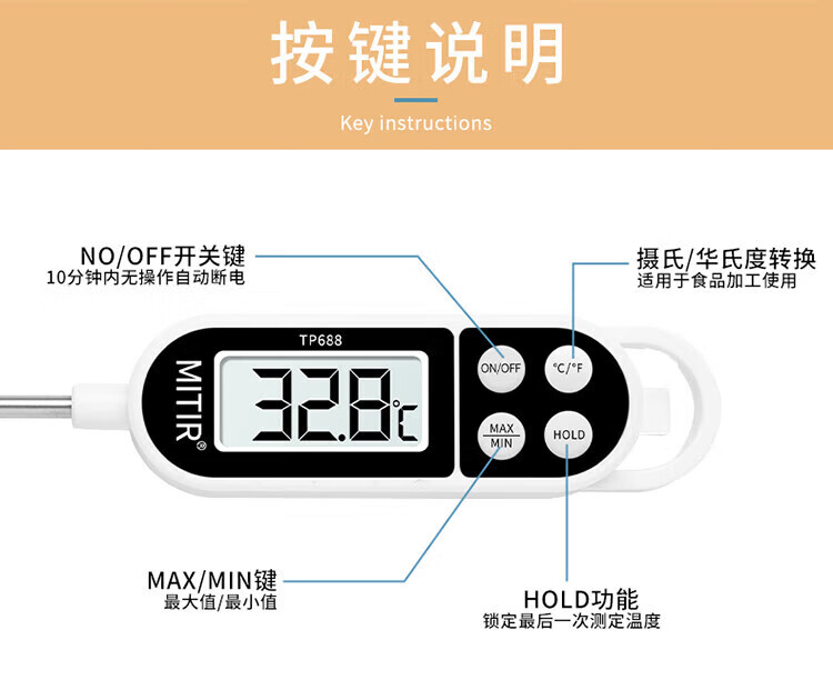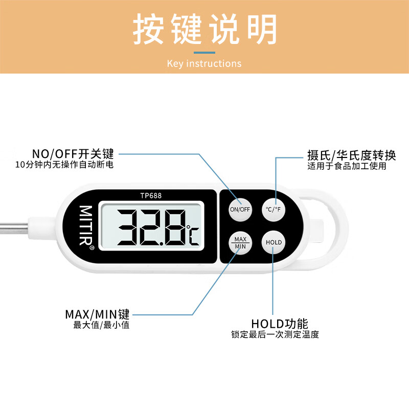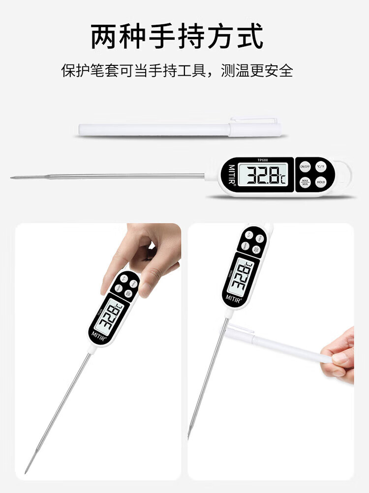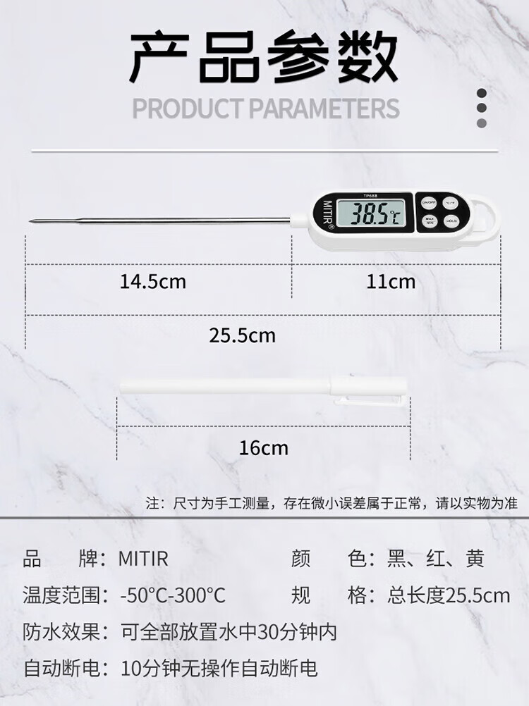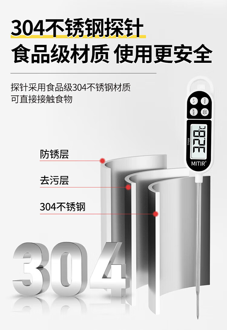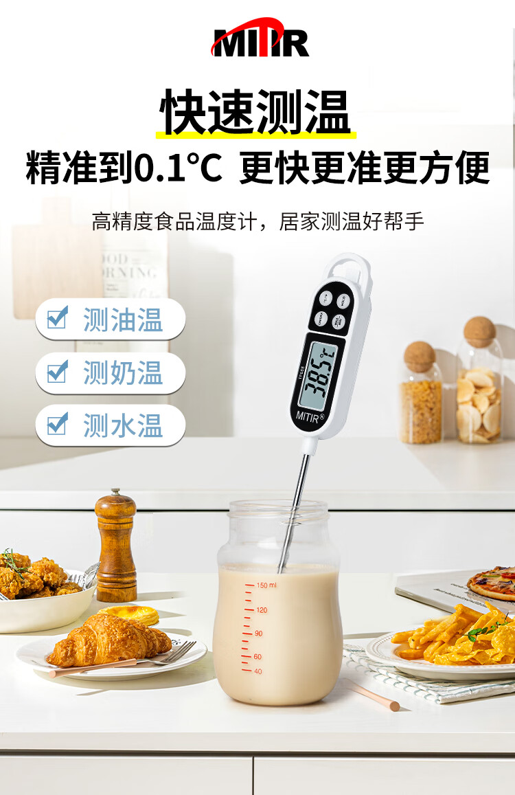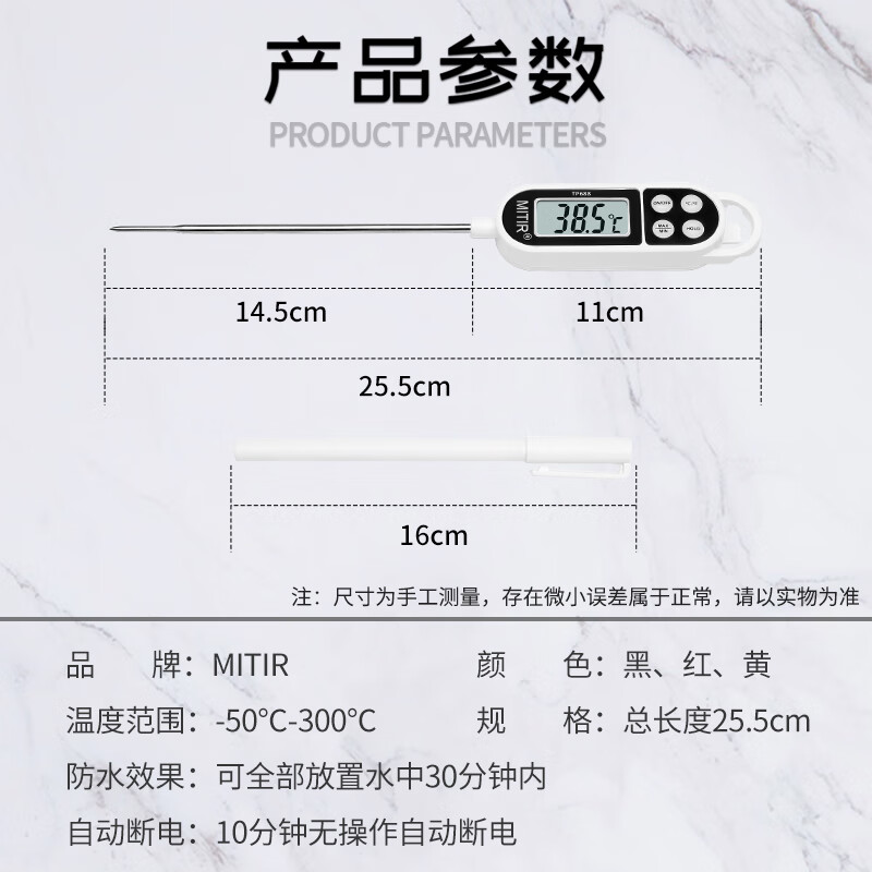 • 商品名称:MITIR食品温度计厨房油温计液体测温计婴儿奶温计洗澡水温计TP688黑色 TP688/个