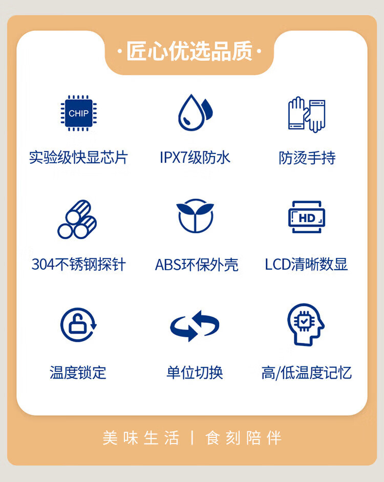 包装清单: 食品温度计×1个,包装盒×1个,合格证×1张