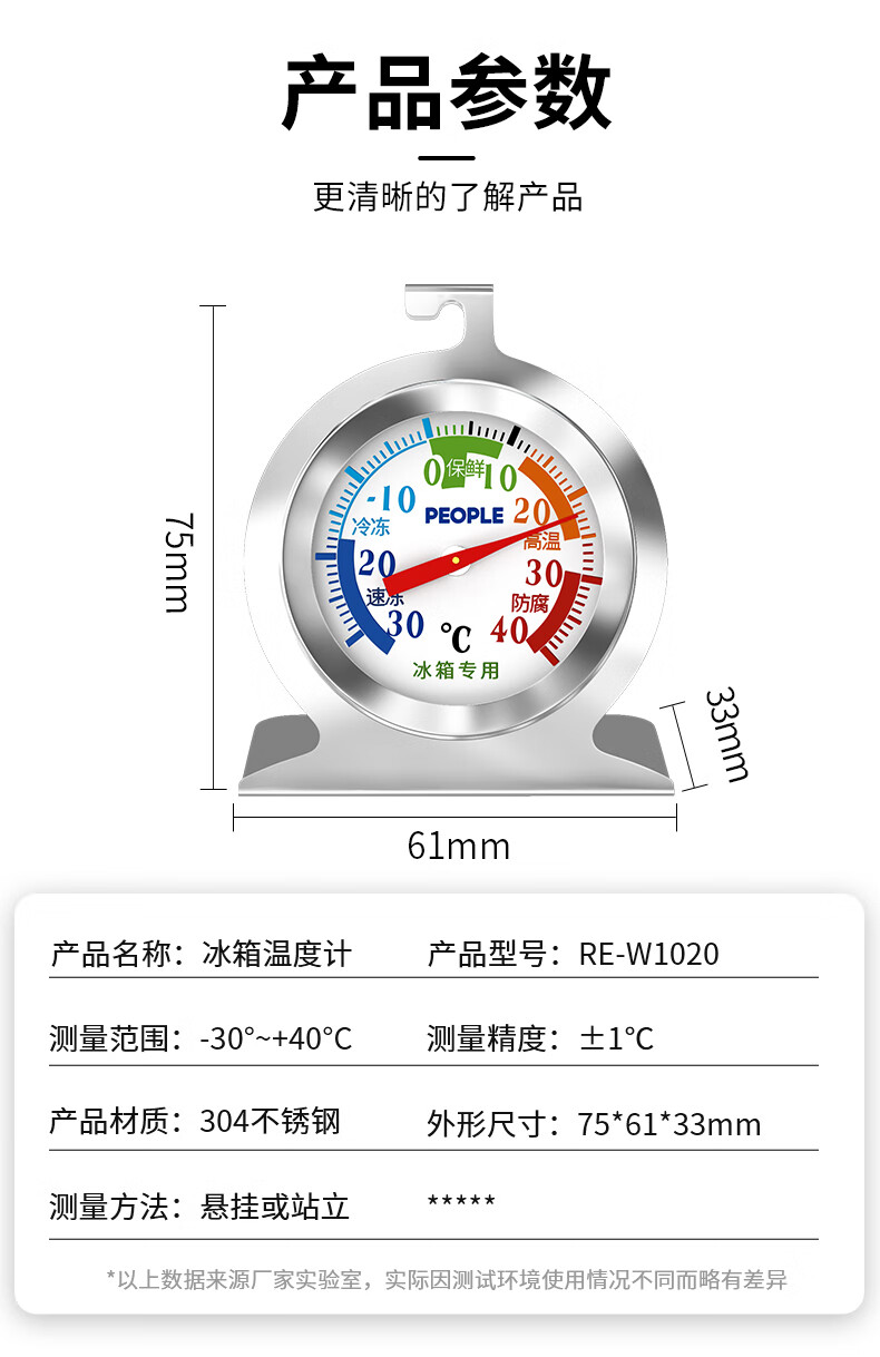 • 商品名称:人民家用室内冰箱超市冰柜温湿度计室内冷冻库冷藏柜实验室温度计1020 W-1020/个
