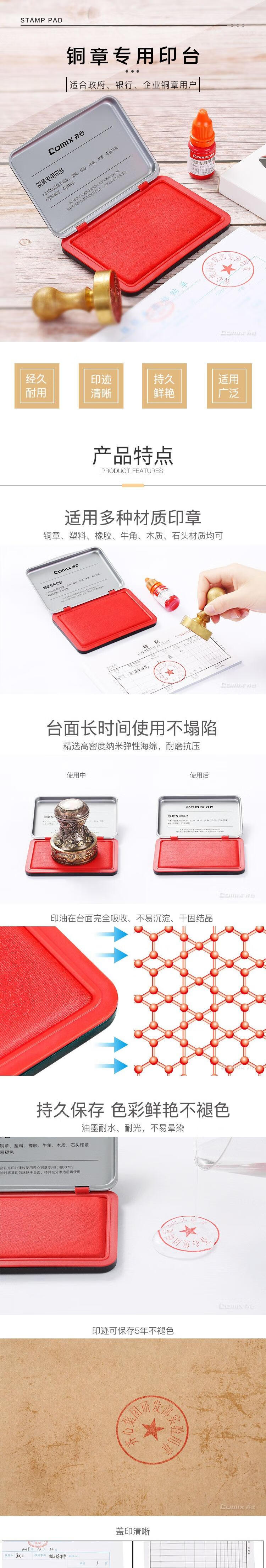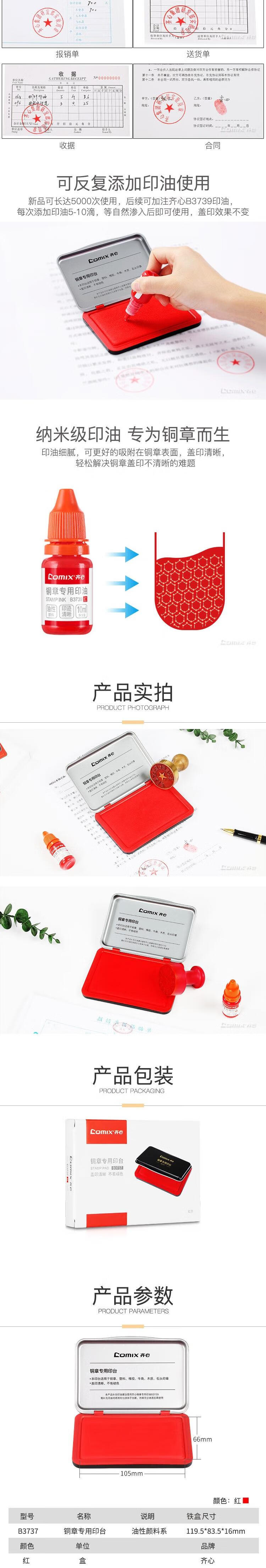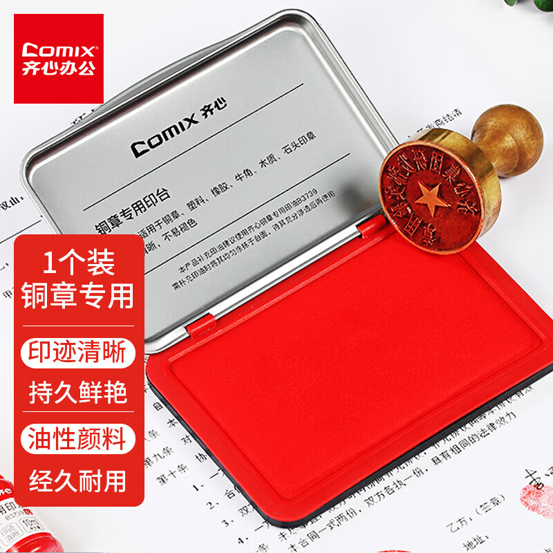 • 商品名称:齐心(COMIX) 油性印台高清财务办公专用铜章印台快干印泥B3737 红色 可定制 B3737/个