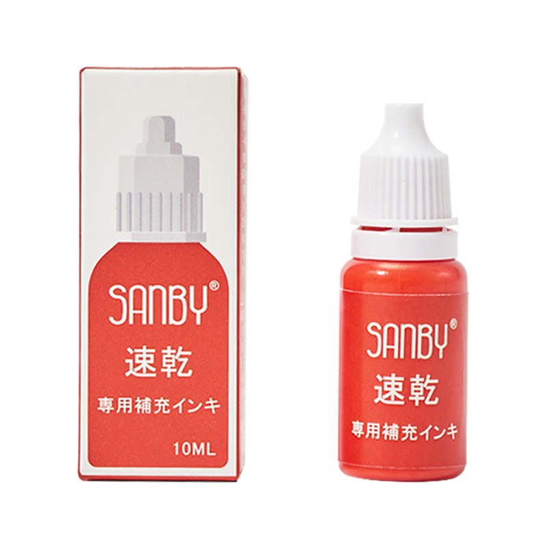 牧野Sanby秒干补充印油朱肉印泥办公财务专用红色纱布圆形印台红色银行财务速干印台盖章便携 红色10ml 1604010-10/瓶
