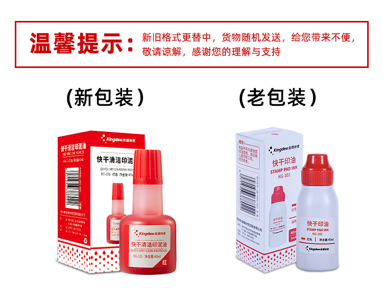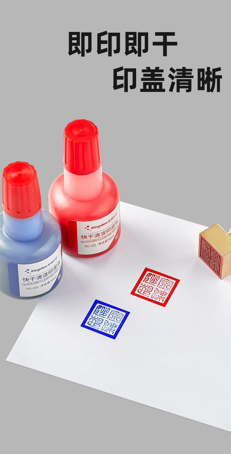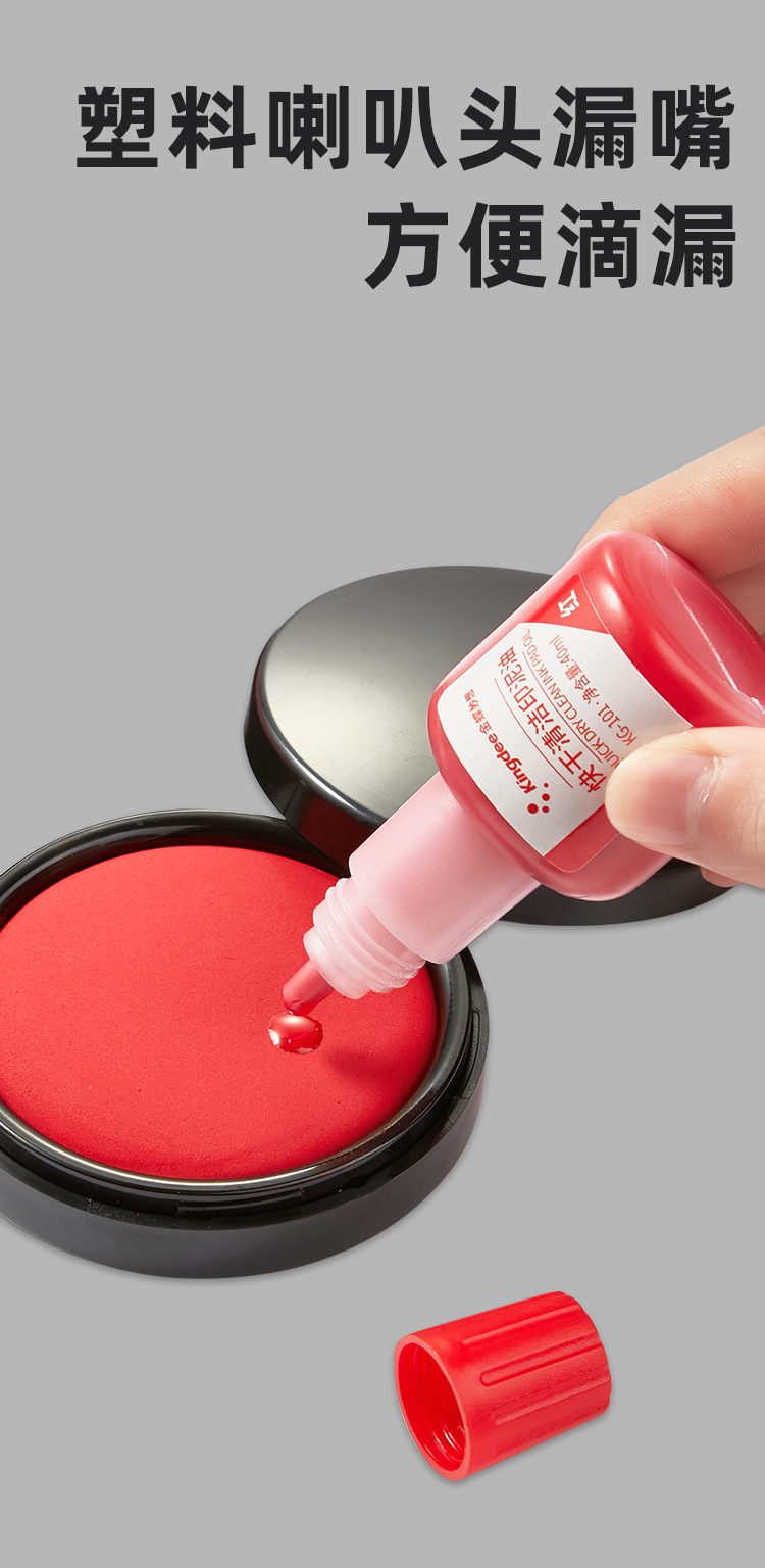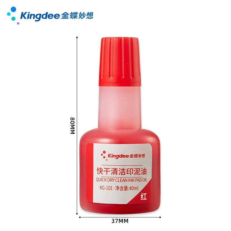 • 商品名称:金蝶(kingdee)红色快干清洁印油40ml财务办公用品印章印油印泥 KG-101/瓶