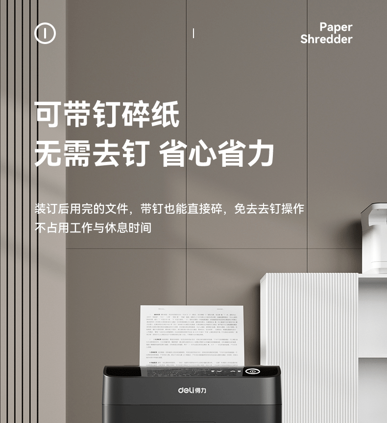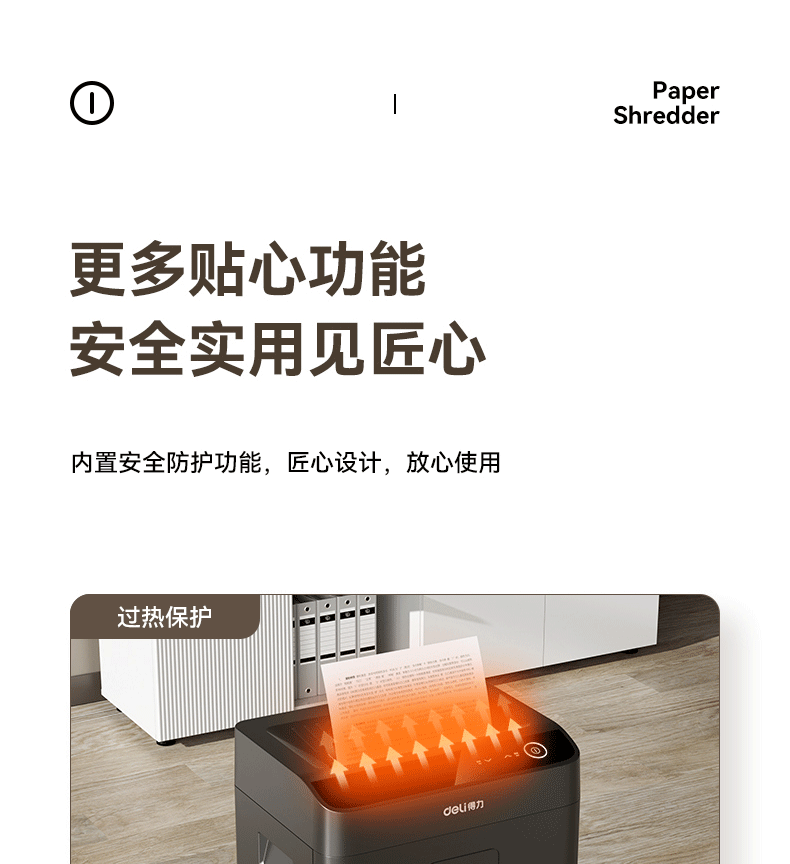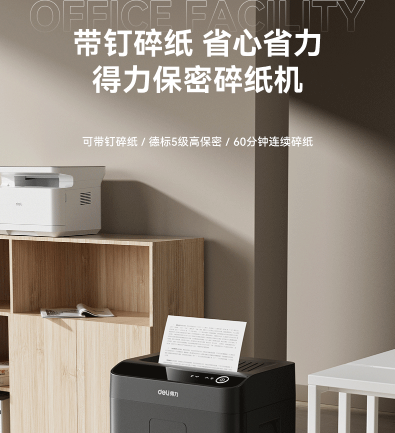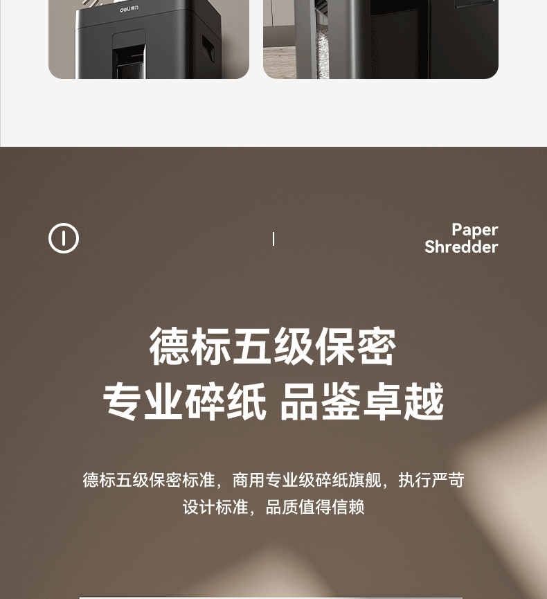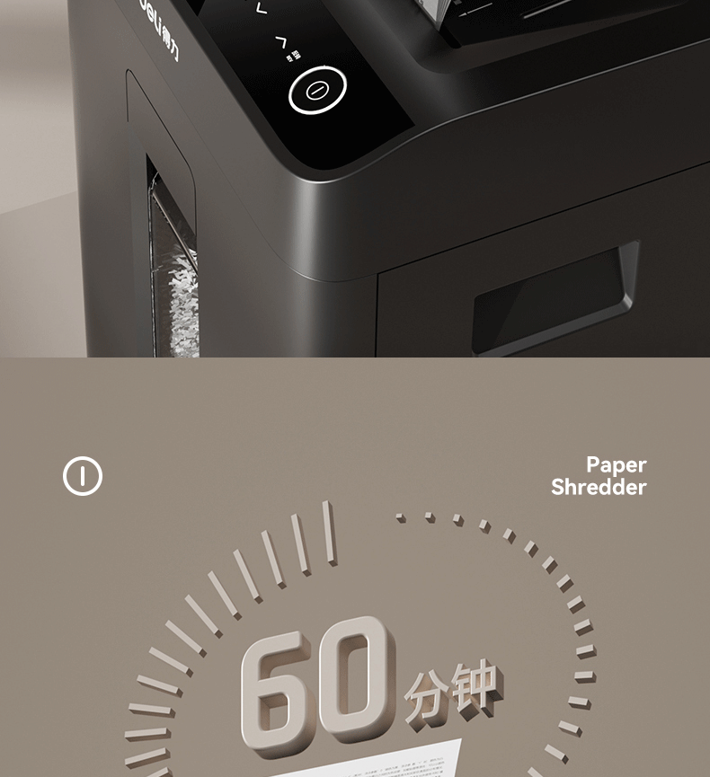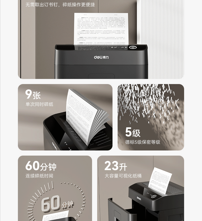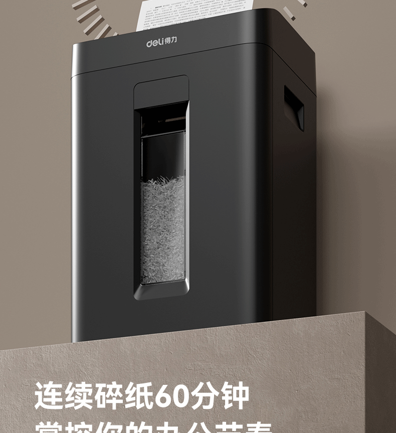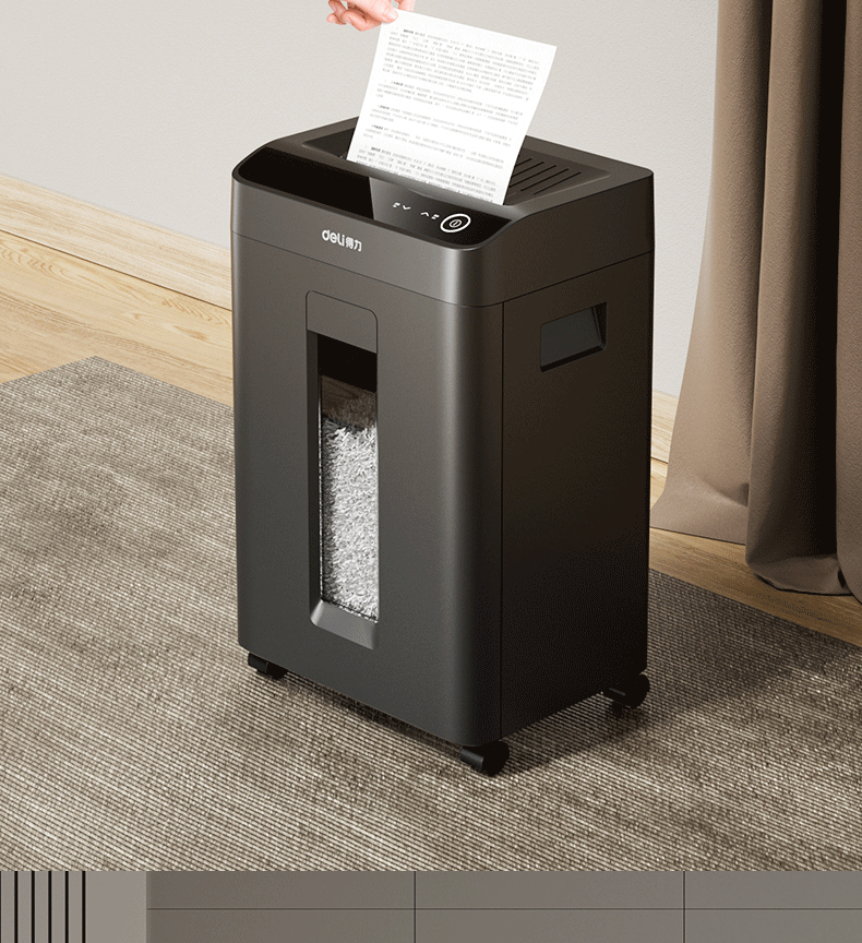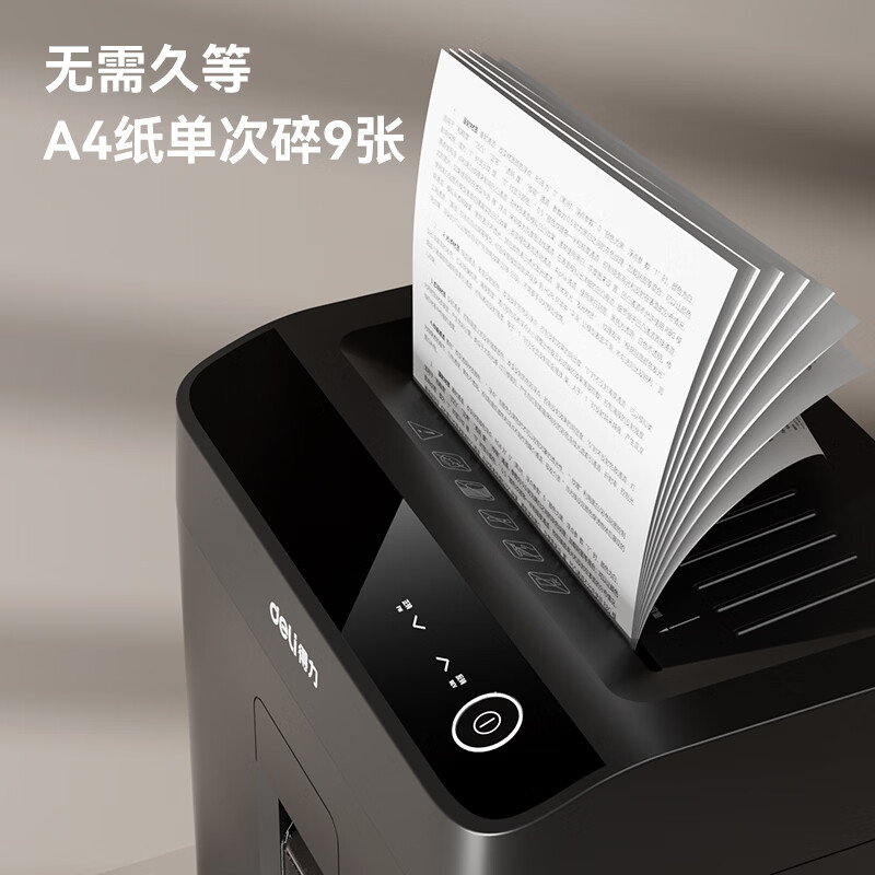 商品名称: 得力碎纸机单次9张60分钟连碎5级保密大型强力办公室专用文件粉碎机23L GA508 GA508/台