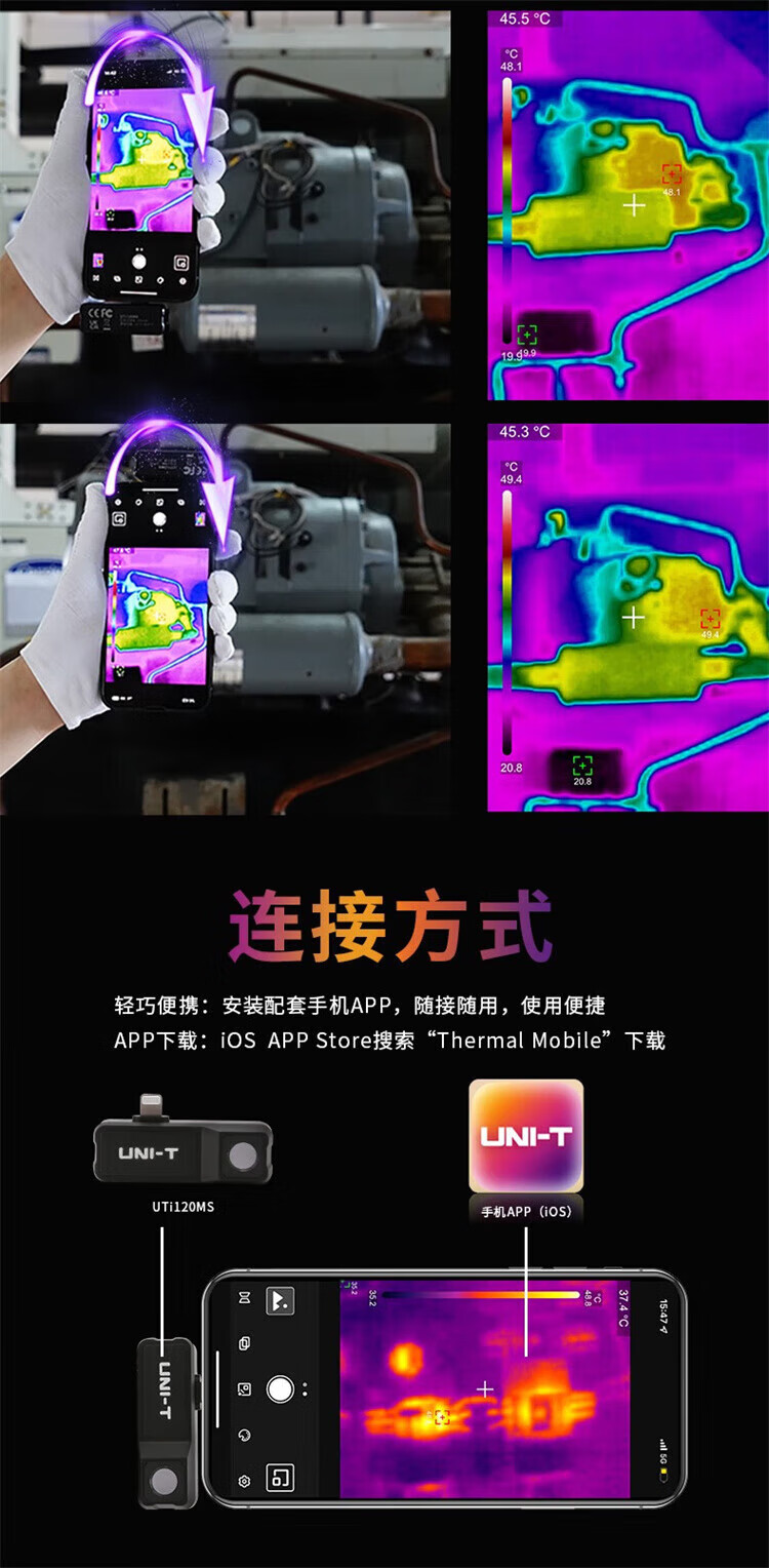 商品名称: 优利德(UNI-T)UTi120MS 红外热成像仪手机模组 热像仪 电力故障 地暖测漏 户外夜视仪 120×90像素 UTi120MS/台