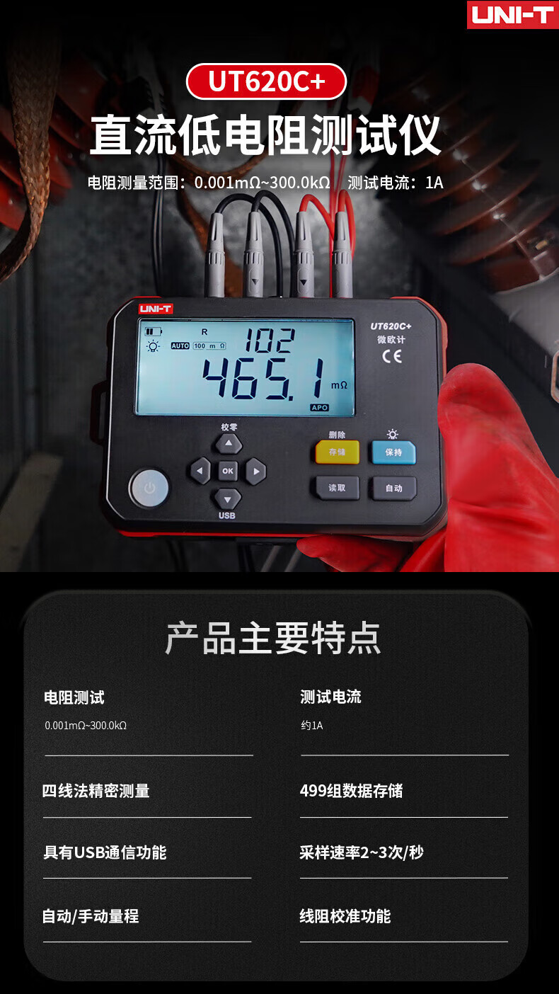 工业品  > 仪器仪表  > 电子检测  >  优利德  >  优利德(UNI-T) UT620C+ 直流低电阻计 0.001mΩ~300.0kΩ 台 UT620C+/台