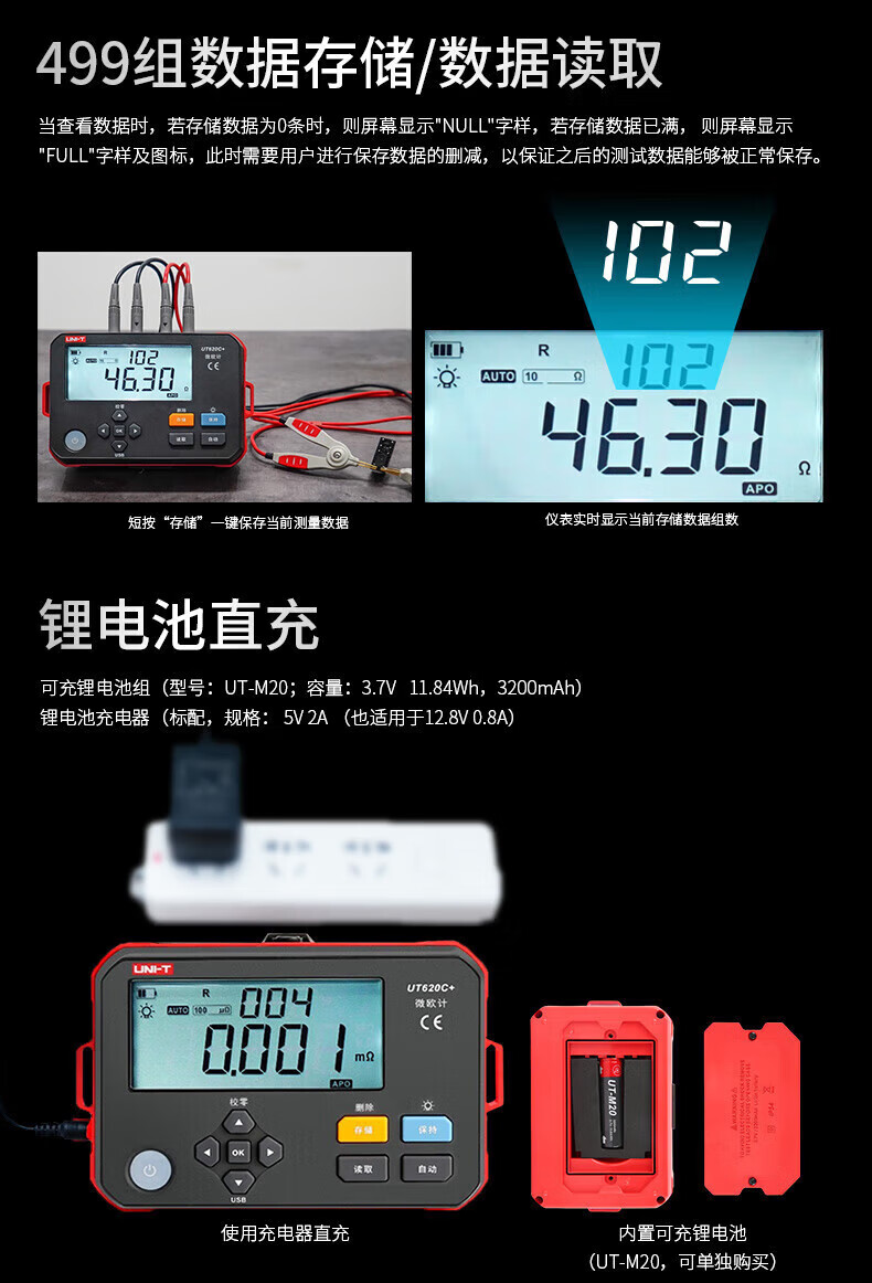 商品名称: 优利德(UNI-T) UT620C+ 直流低电阻计 0.001mΩ~300.0kΩ 台 UT620C+/台
