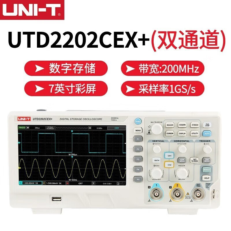 优利德(UNI-T)UTD2202CEX+ 数字存储示波器 USB存储示波仪 白灰色双通道 200MHz宽带 1GS/s采样率 UTD2202CEX+/台
