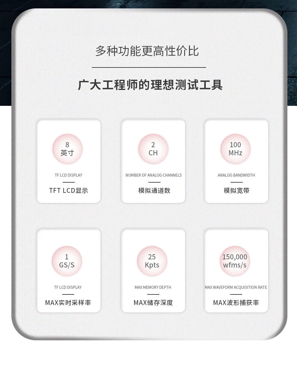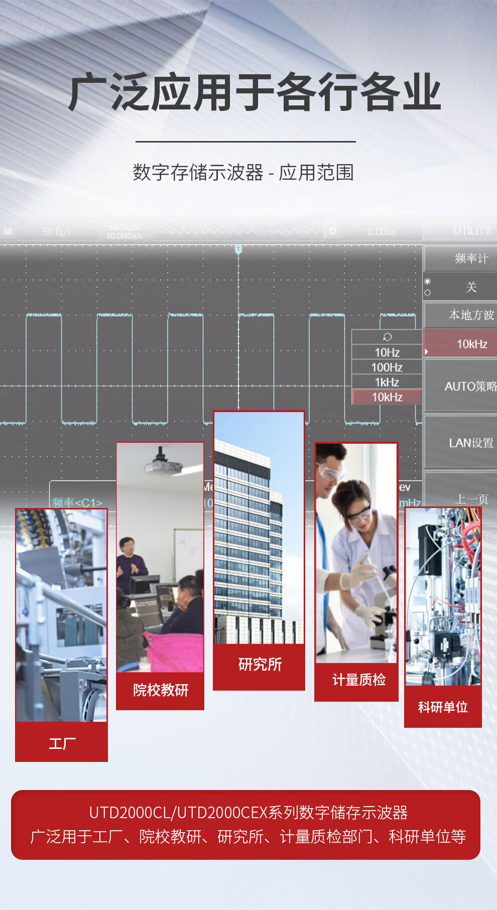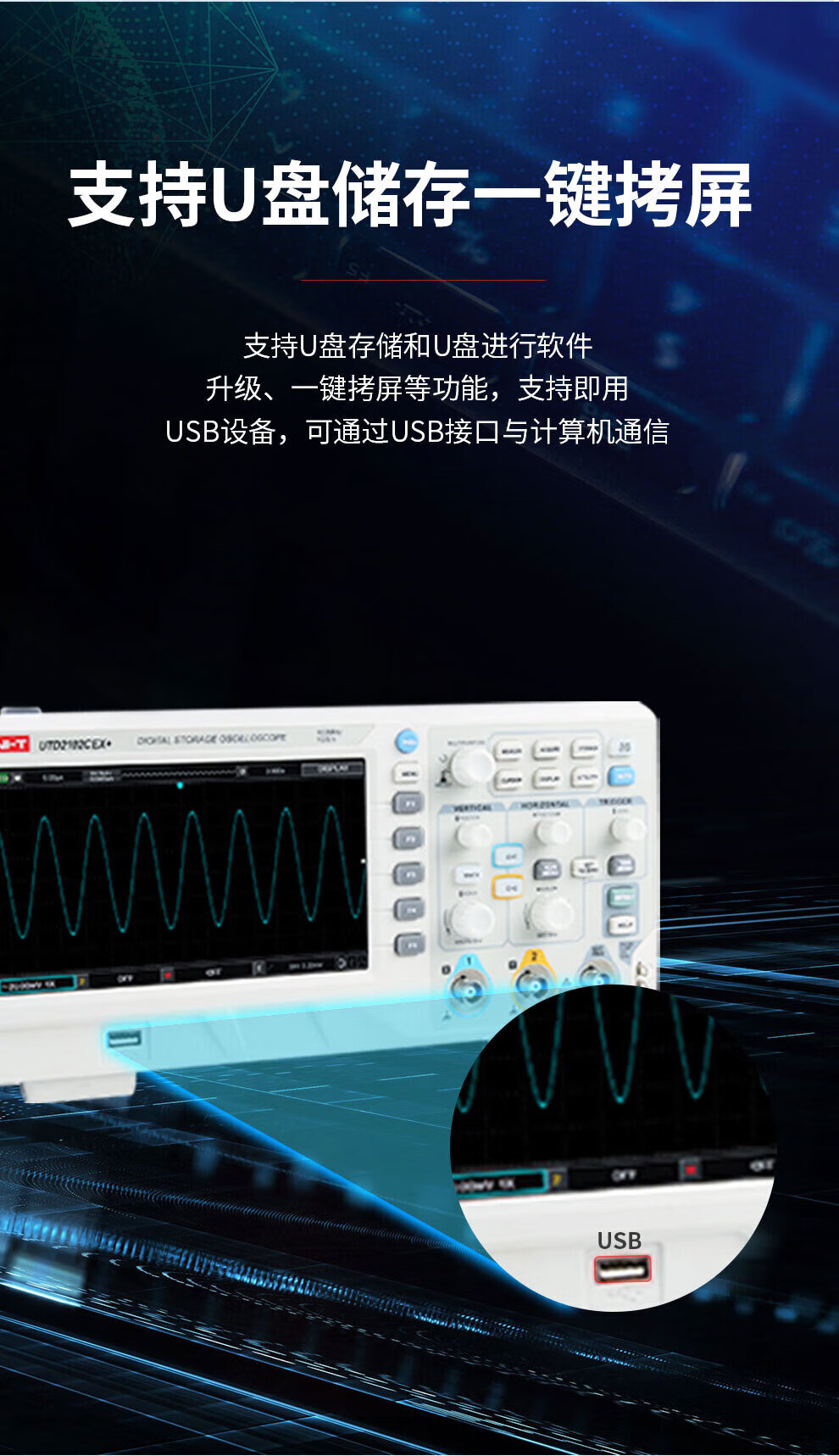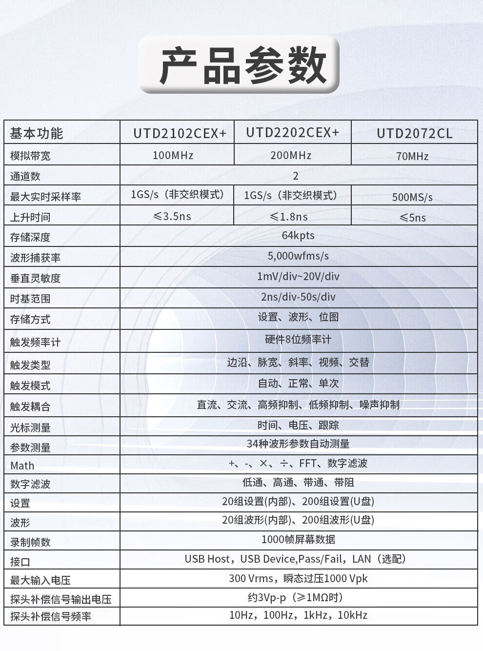 包装清单: UTD2202CEX+ 数字存储示波器 USB存储示波仪 白灰色双通道 200MHz宽带 1GS/s采样率*1