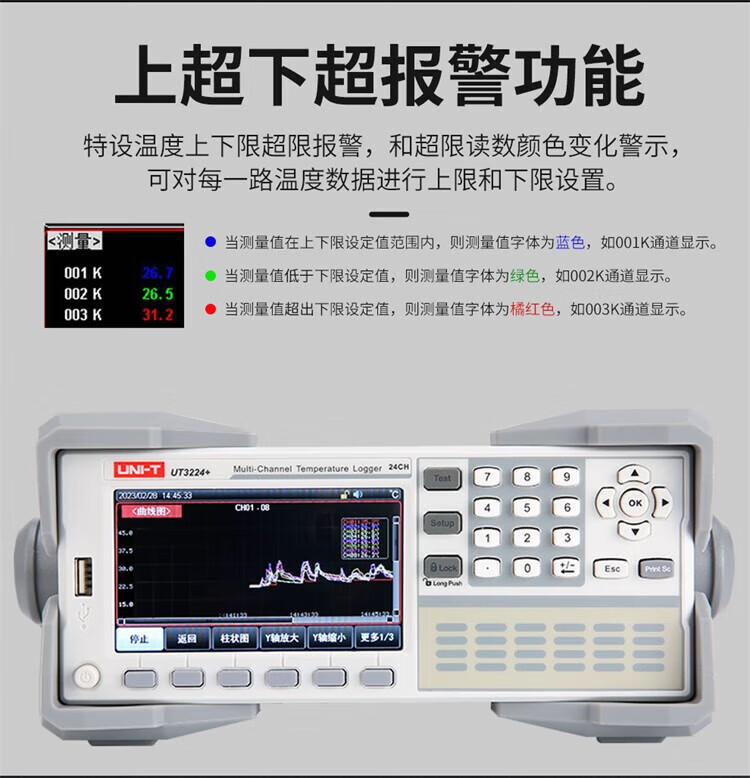 工业品  > 仪器仪表  > 电子检测  >  优利德  >  优利德(UNI-T)UT3224+ 多路温度测试仪 巡检仪 记录仪 24通道 UT3224+/台