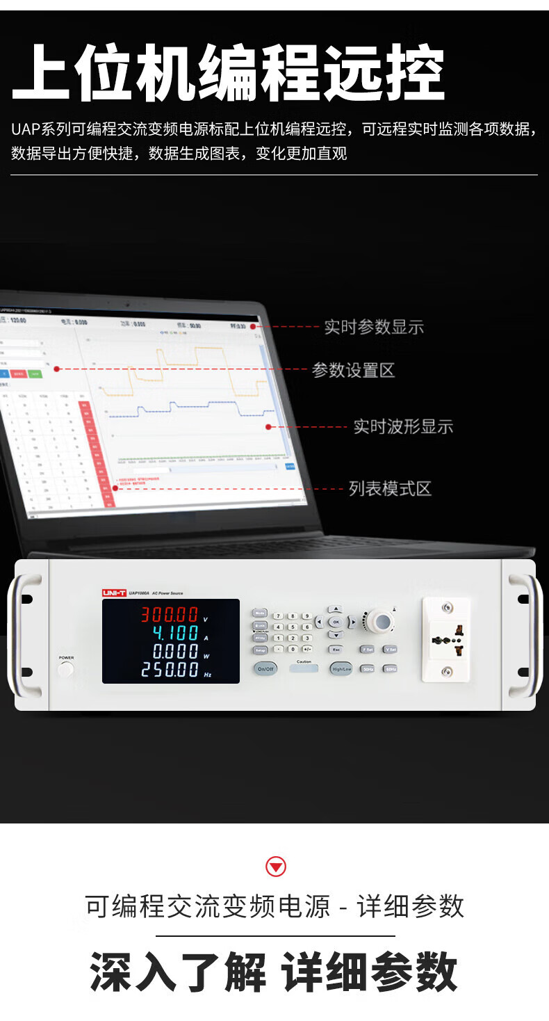 商品名称: 优利德(UNI-T)UAP1000A 可编程交流变频电源 双通道 1kVA 大功率稳压电源 UAP1000A/台