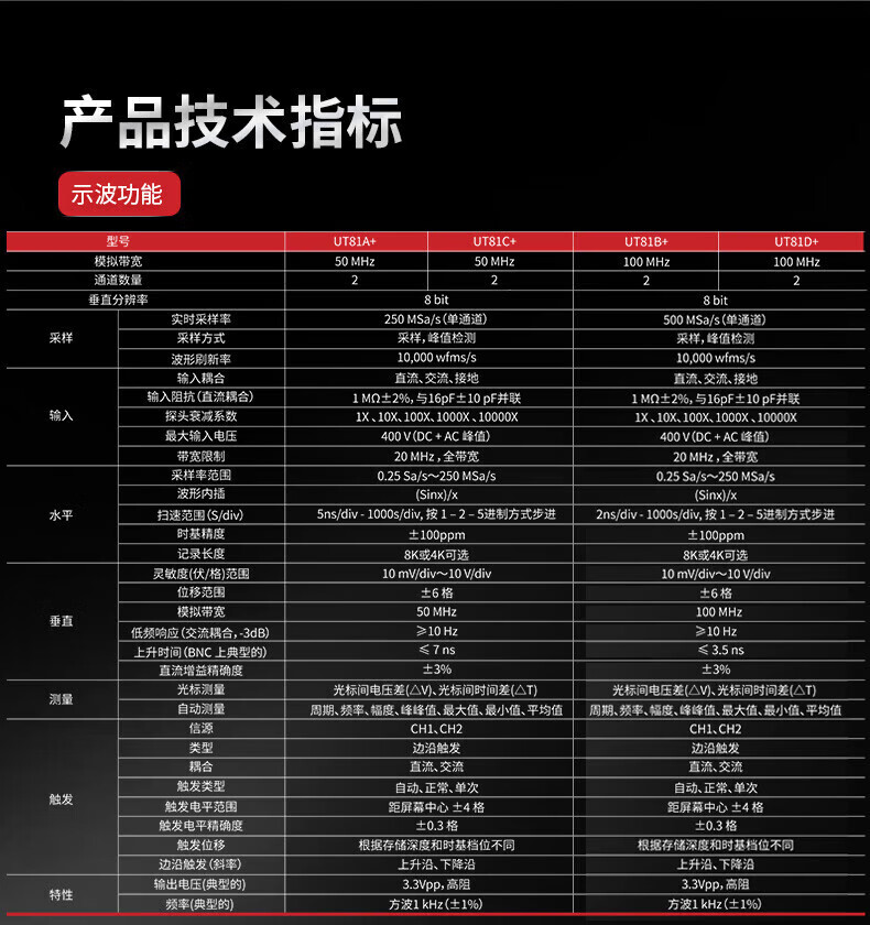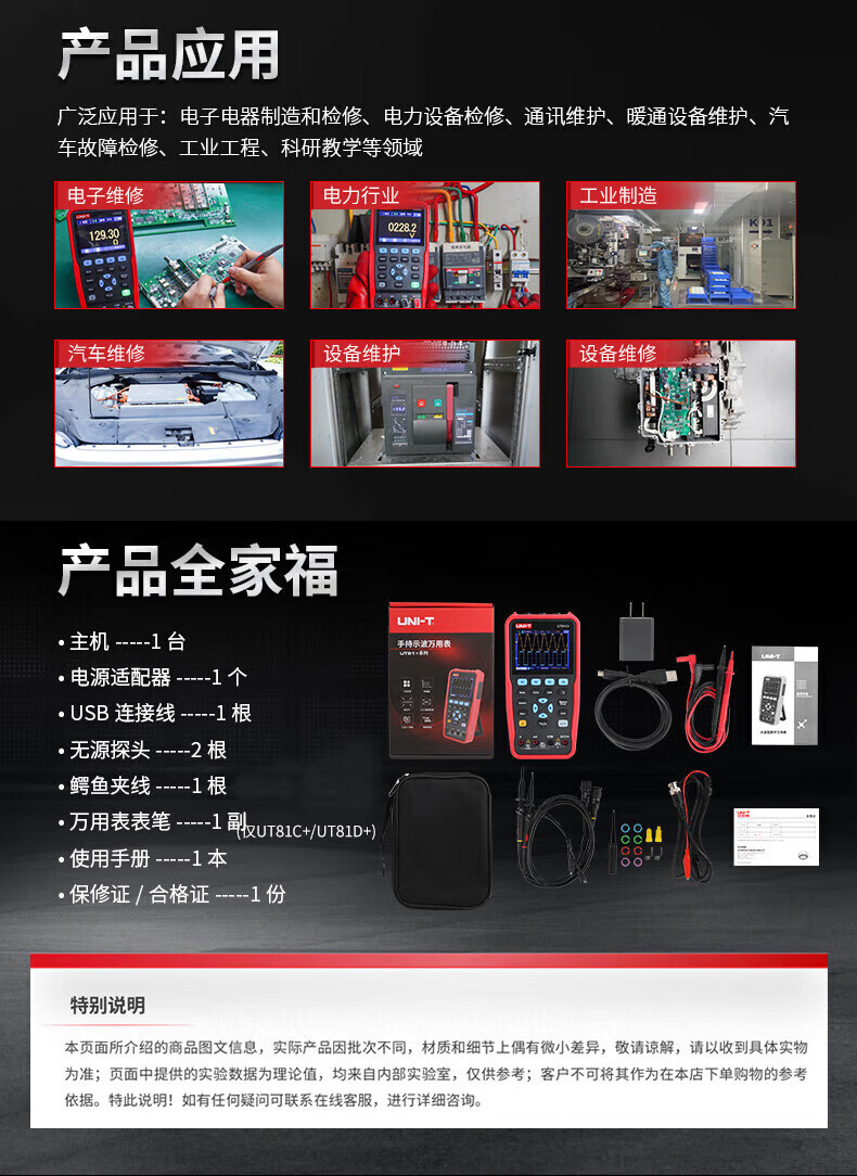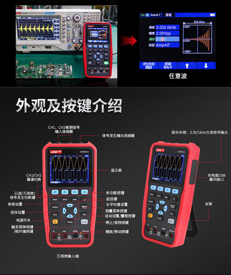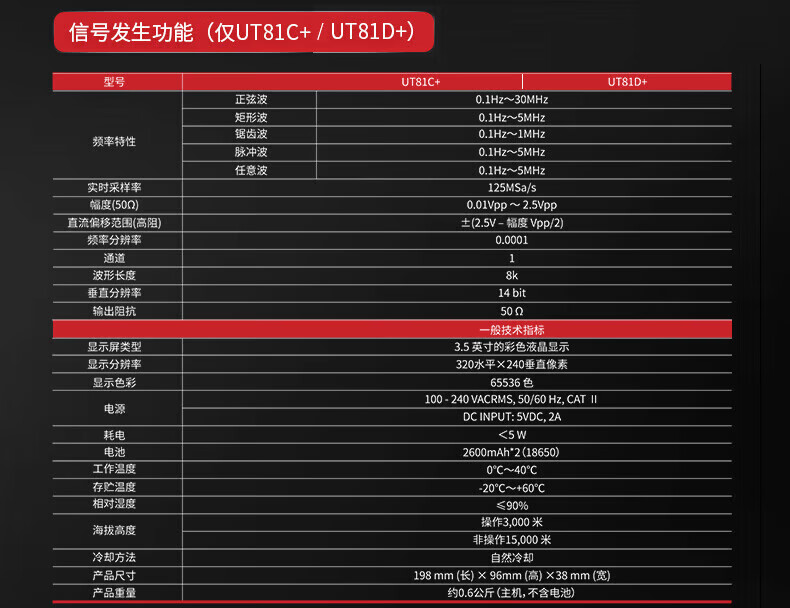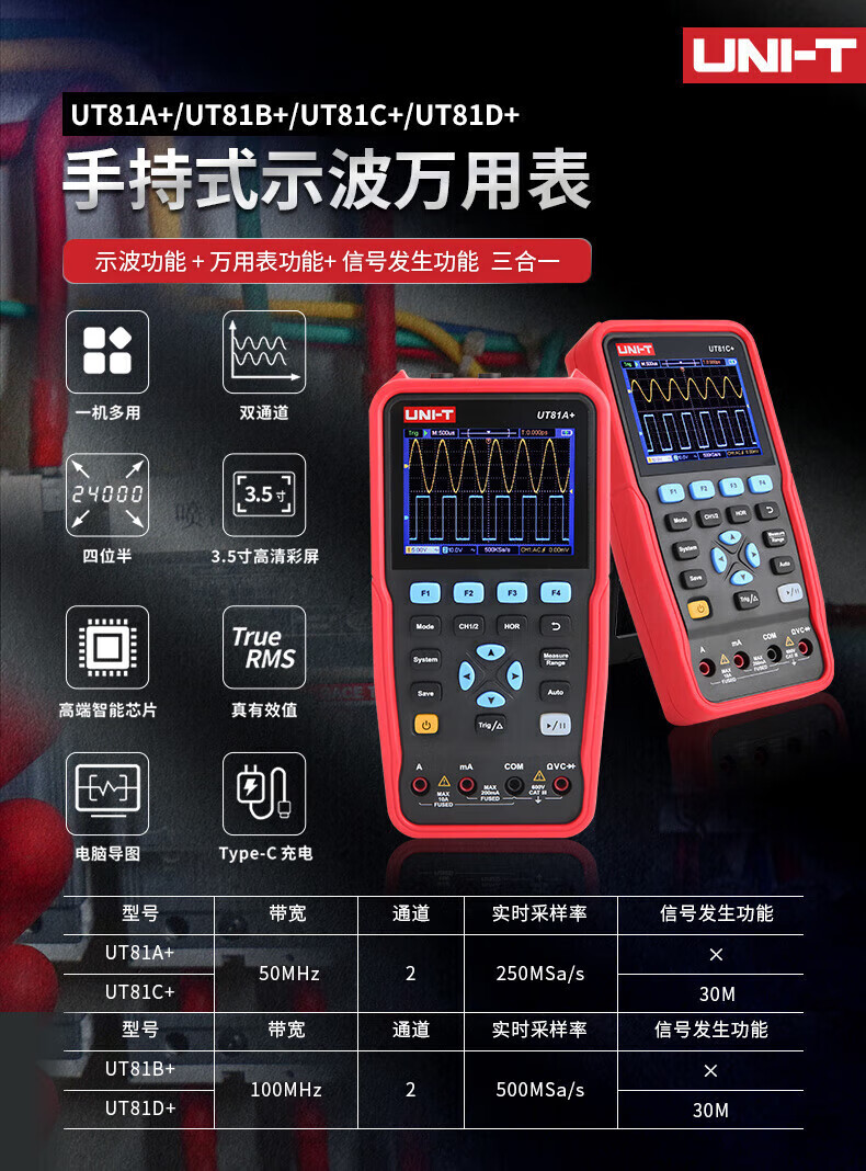 • 商品名称:优利德(UNI-T)UT81D+ 手持示波万用表 双通道 彩屏 UT81D+/台