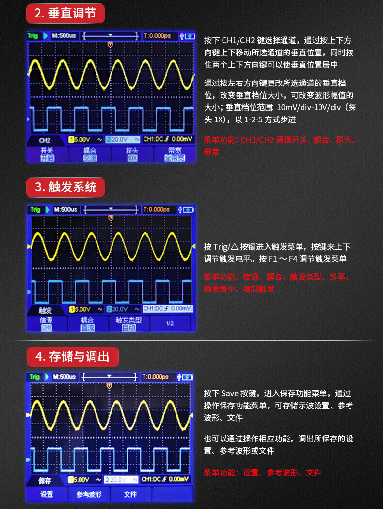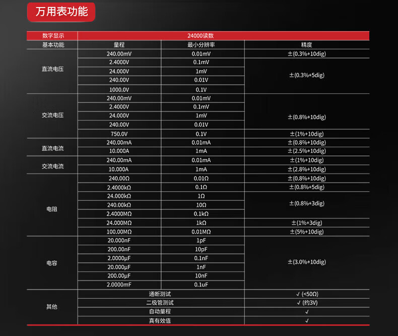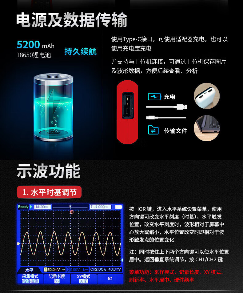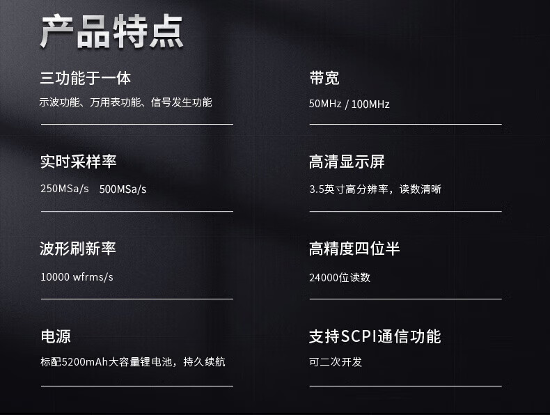 包装清单: 主机、电源适配器、说明书、表笔、鳄鱼夹