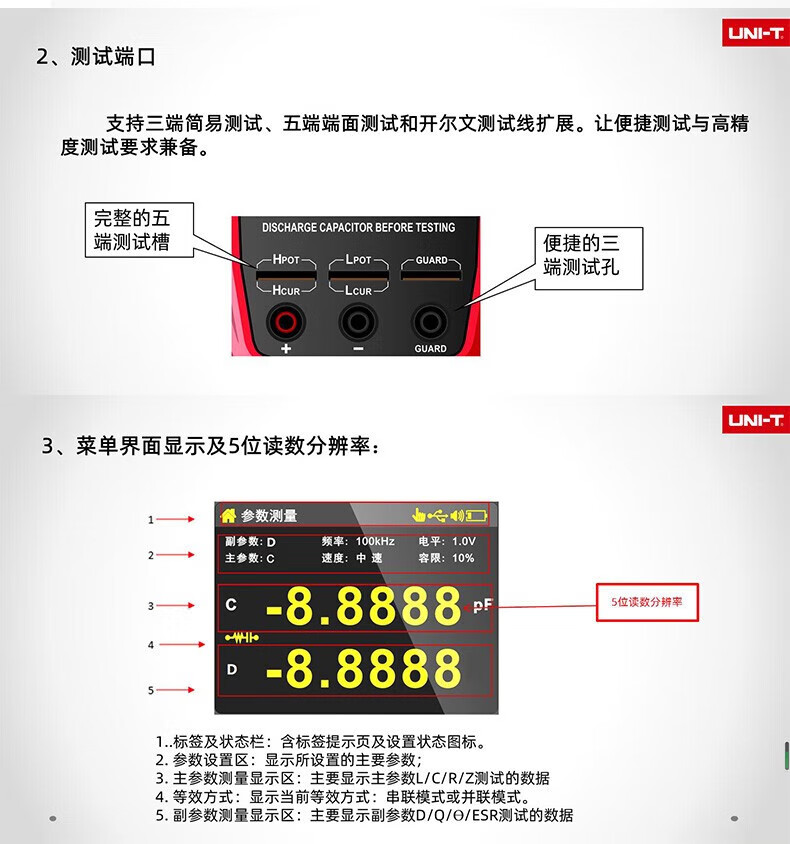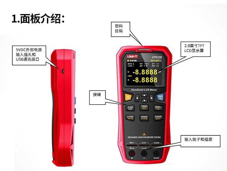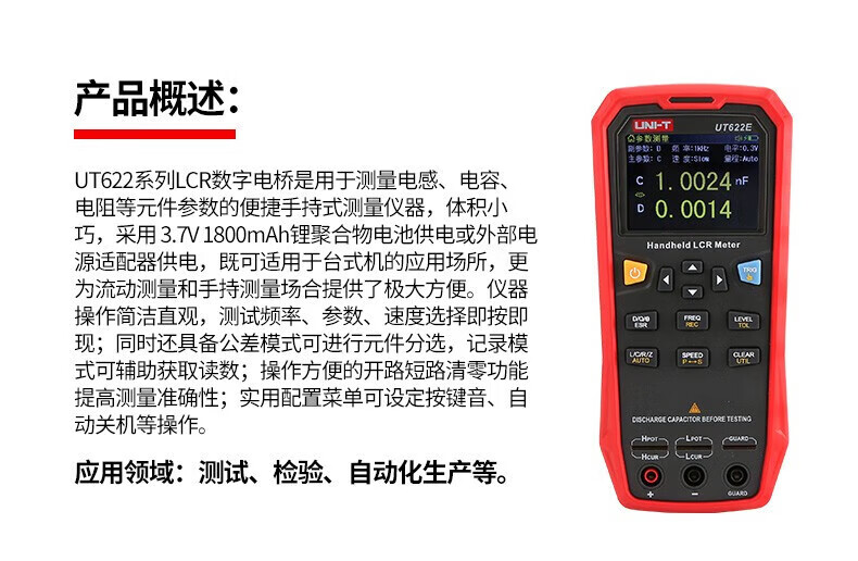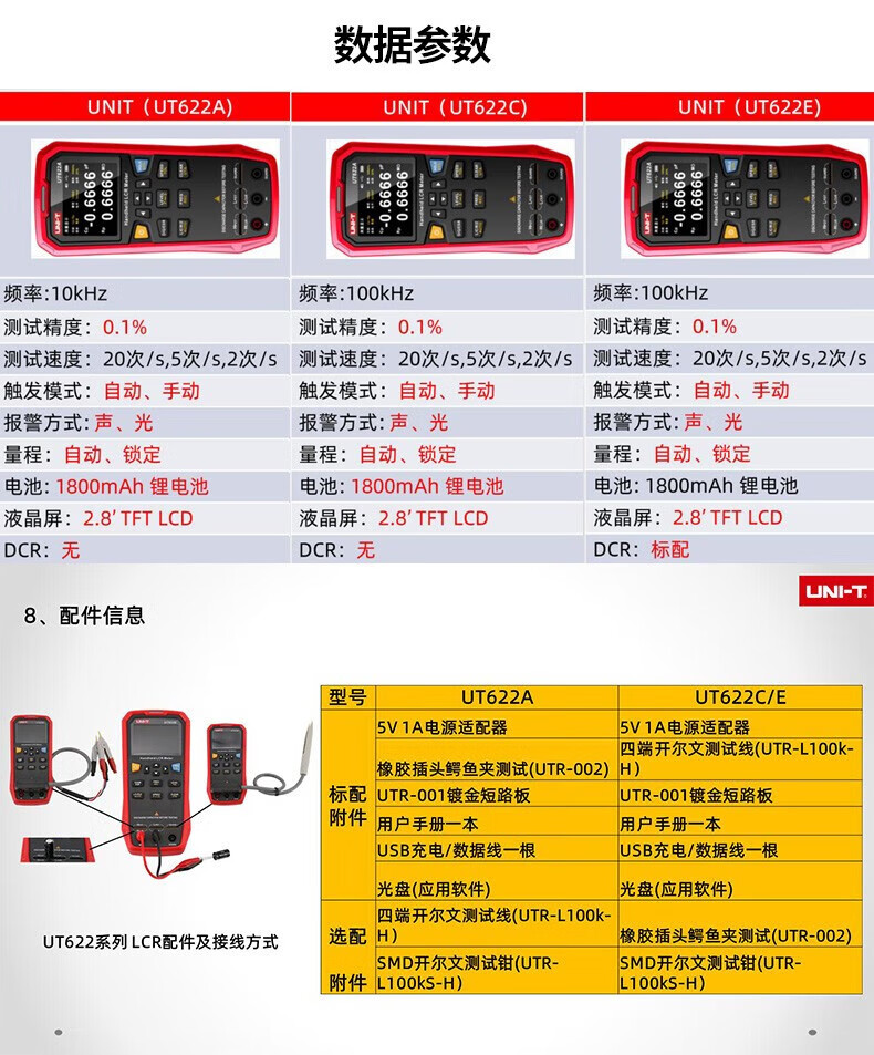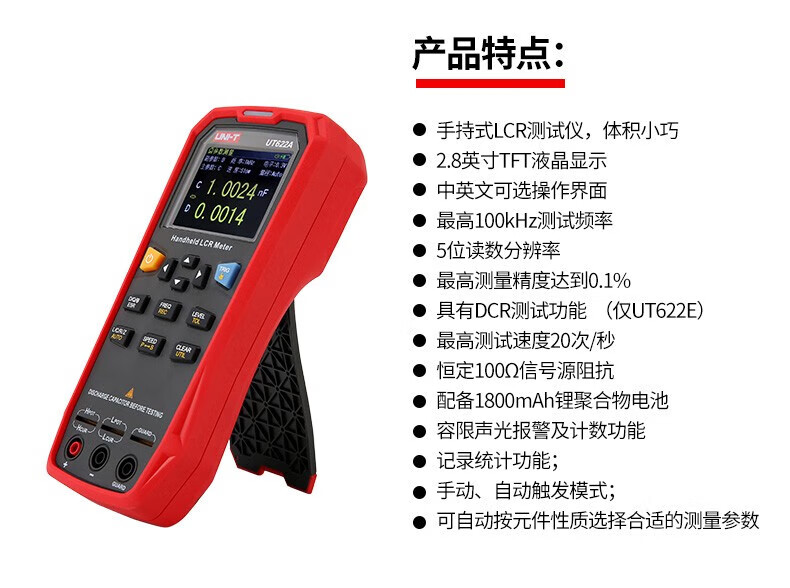• 商品名称:优利德(UNI-T)UT622A LCR数字电桥 手持式测量 高精度电阻电感电容表测试仪 UT622A/台