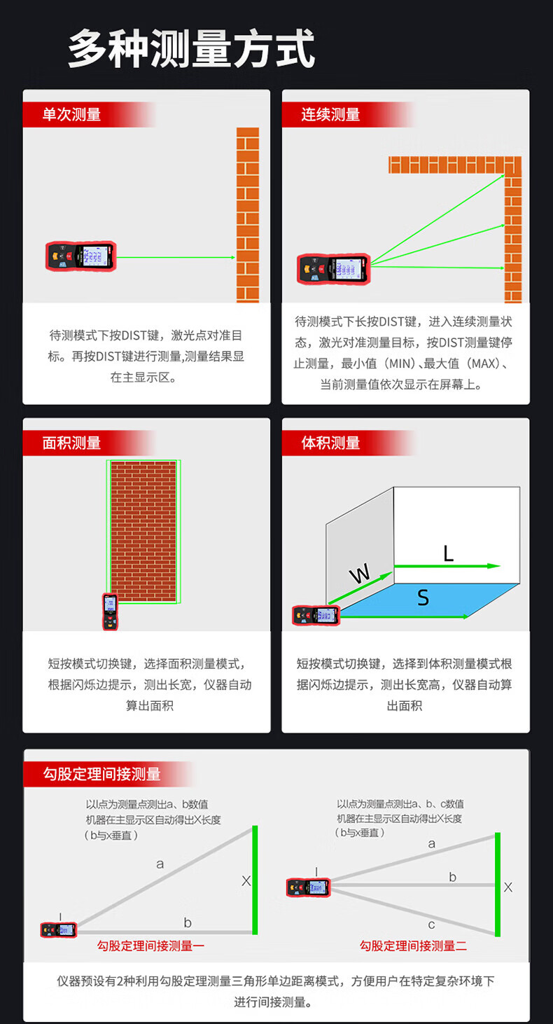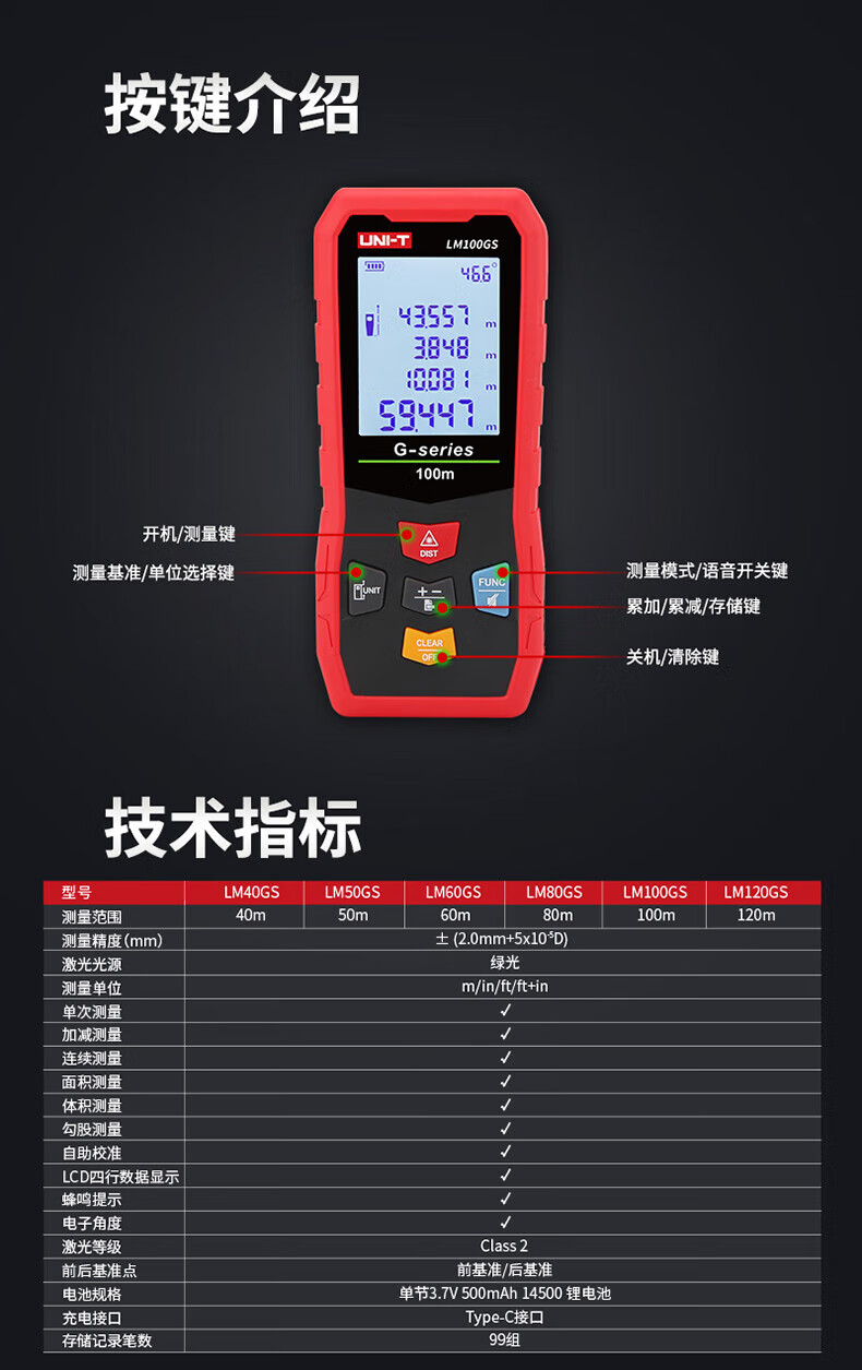 • 商品名称:优利德(UNI-T) LM50GS 绿光测距仪高精度手持激光测距仪红外线电子尺量房仪倾角仪 LM50GS/台