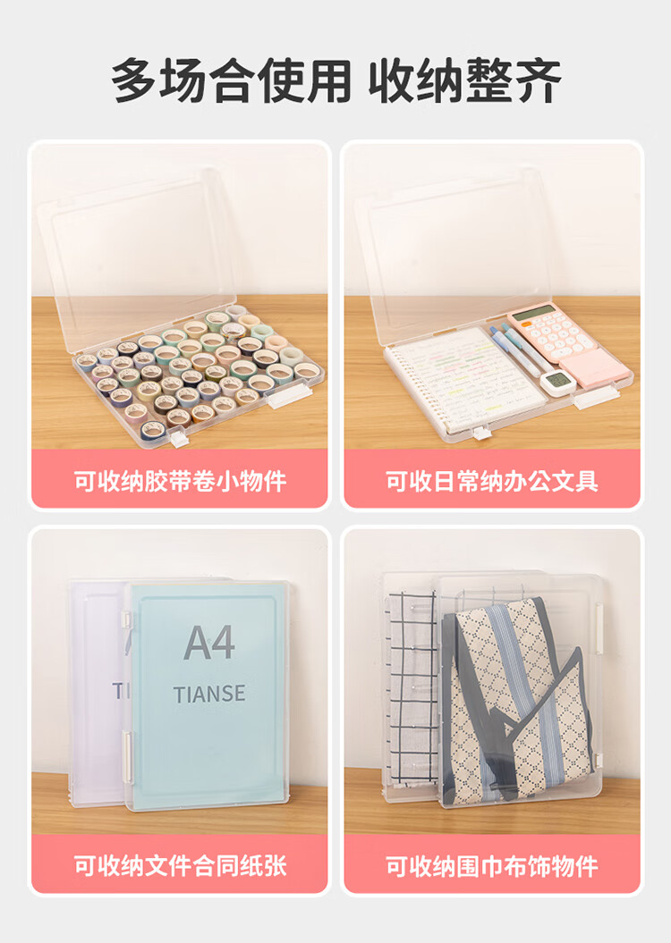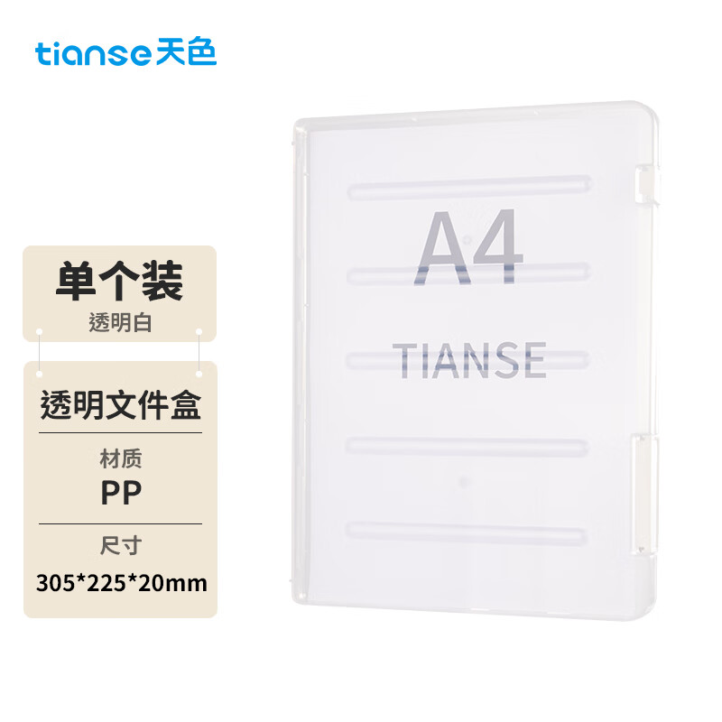 文教文化用品  > 收纳管理用品  > 档案盒/资料盒  >  天色/TIANSE  >  天色 A4透明文件盒 20mm档案盒文件资料盒 透明证件照片收纳盒防水整理盒办公用品 TS-314 透明文件盒/个