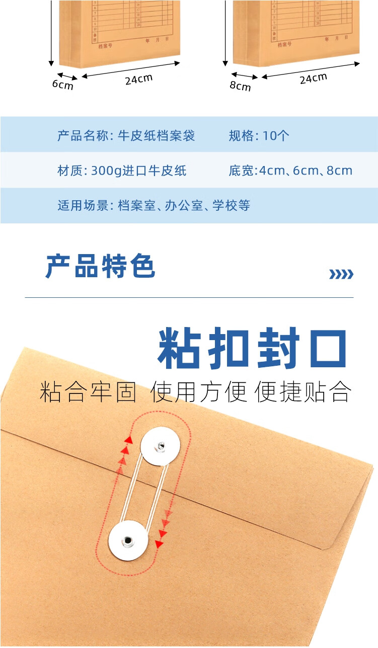 包装清单: 6公分进口牛皮纸档案袋 10个装