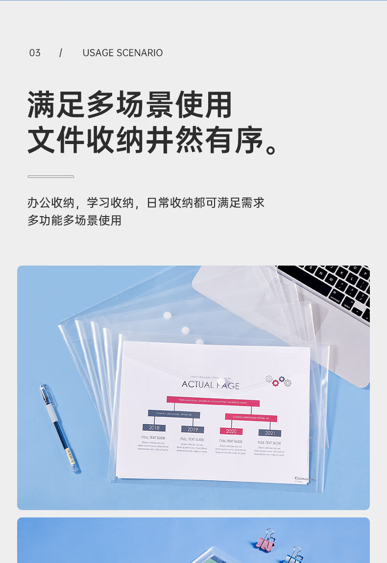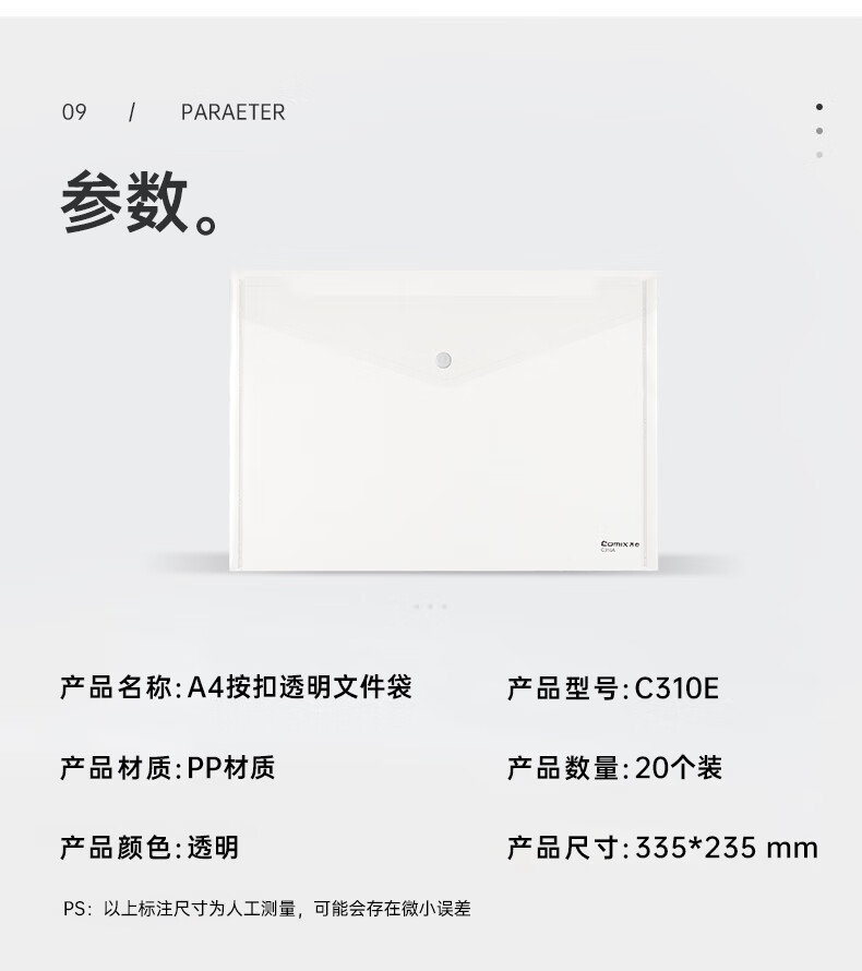 • 商品名称:齐心(COMIX)20个装A4按扣学生透明文件袋 防水档案袋资料袋 试卷收纳学科目分类 C310E C310E/包