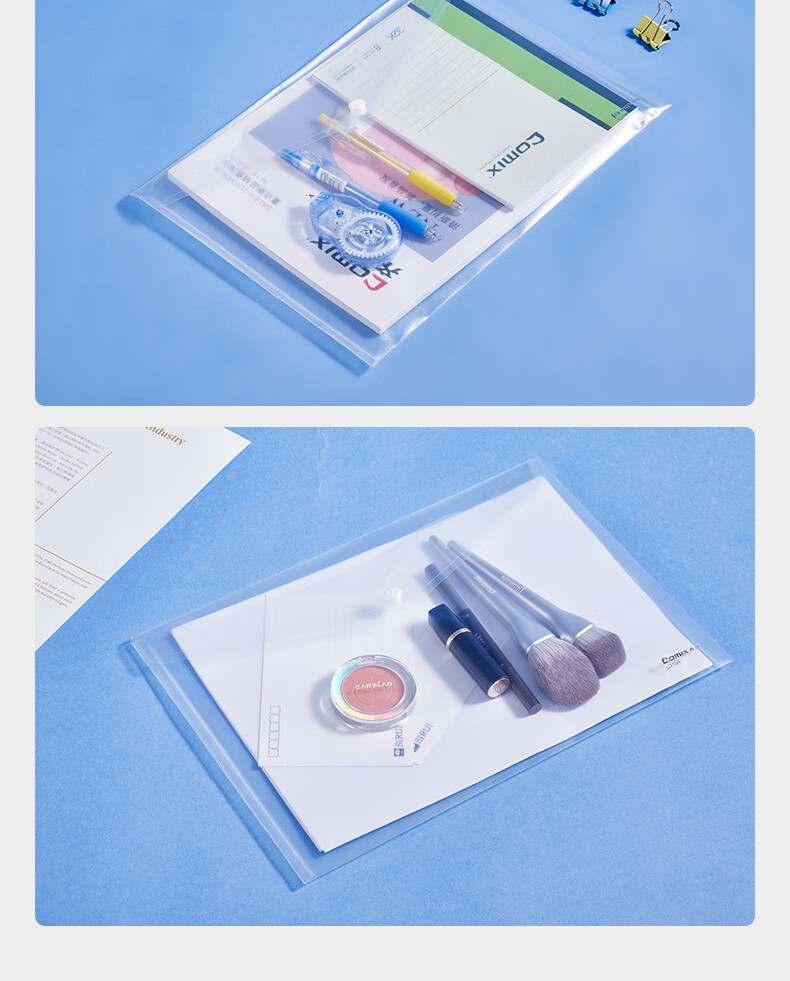 文教文化用品  > 收纳管理用品  > 其他文件资料袋  >  齐心/COMIX  >  齐心(COMIX)20个装A4按扣学生透明文件袋 防水档案袋资料袋 试卷收纳学科目分类 C310E C310E/包