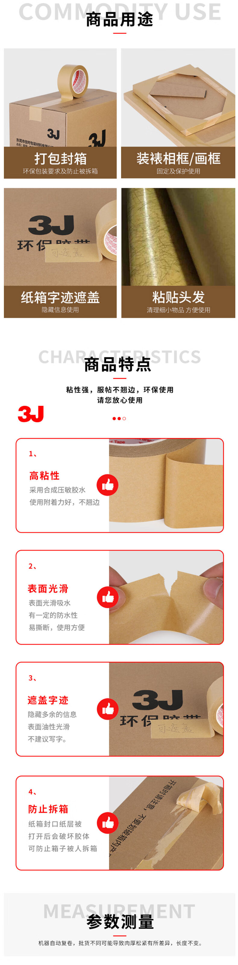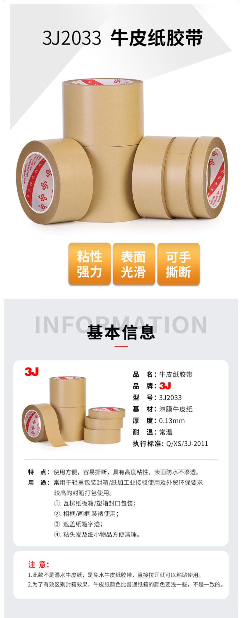• 商品名称:3J 2033牛皮纸胶带高粘强力高粘免水牛皮纸胶带纸质手撕牛皮纸 10cm宽*33米(3卷) 2033/卷