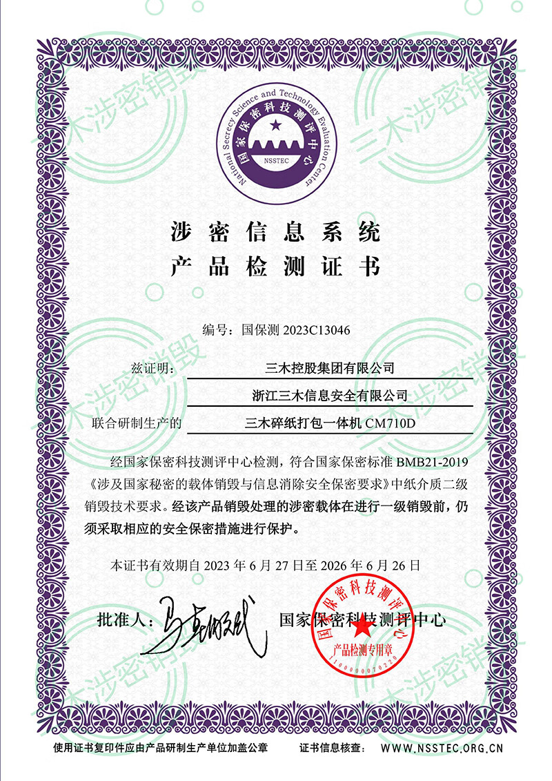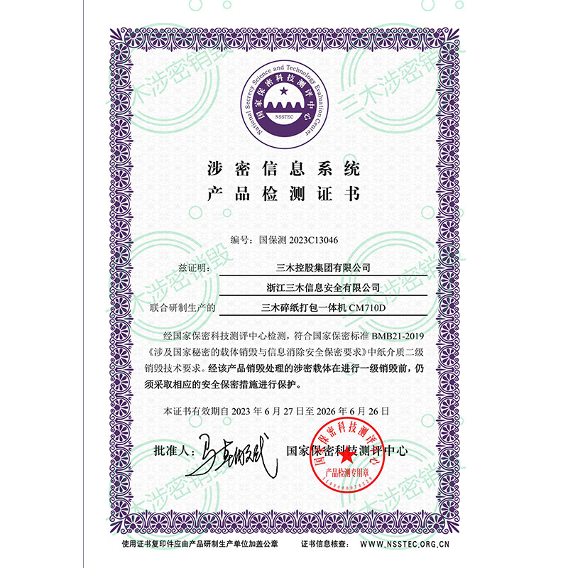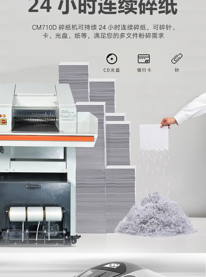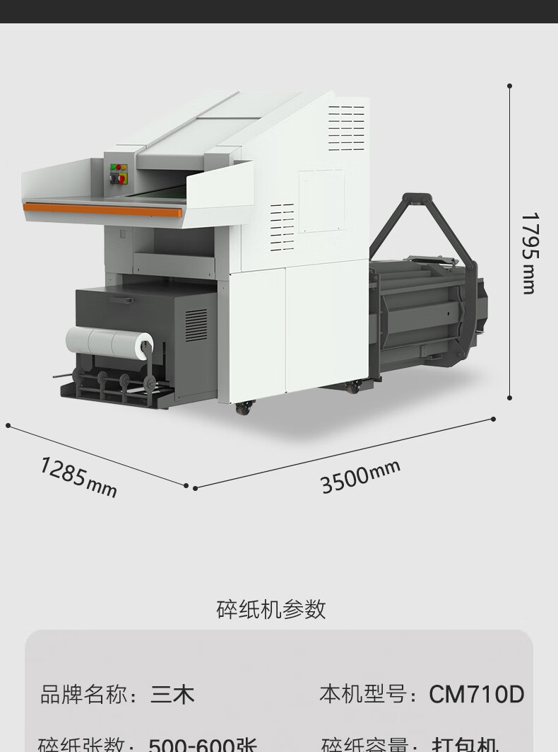 • 商品名称:三木(SUNWOOD)涉密销毁碎纸机打包一体机(单次600张 24小时)免费上门安装调试 CM710D 厂家直发 CM700D/台