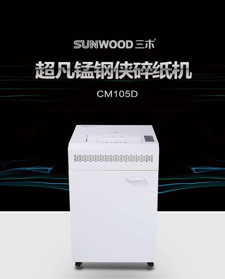 商品名称: 三木(SUNWOOD)4级保密专业销毁碎纸机 (单次25张 持续120分钟 65L 可碎纸,光盘,卡,回形针、订书针) CM105D CM105D/台