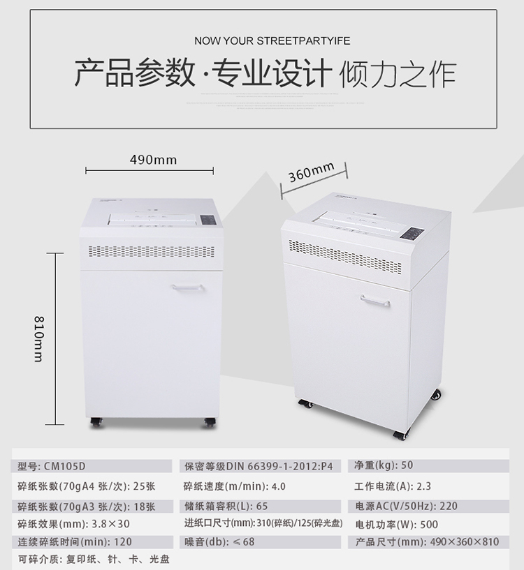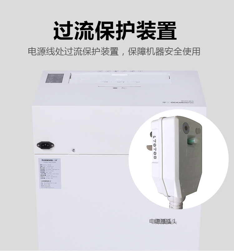 • 商品名称:三木(SUNWOOD)4级保密专业销毁碎纸机 (单次25张 持续120分钟 65L 可碎纸,光盘,卡,回形针、订书针) CM105D CM105D/台