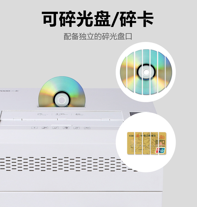 电脑、办公  > 办公设备  > 碎纸机  >  三木/SUNWOOD  >  三木(SUNWOOD)4级保密专业销毁碎纸机 (单次25张 持续120分钟 65L 可碎纸,光盘,卡,回形针、订书针) CM105D CM105D/台