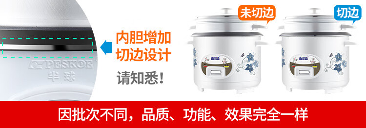 商品名称: 半球(PESKOE)电饭煲5L电饭锅 家用直身电饭煲带蒸笼MW-DS50A1-G 适用人数4至5人 MW-DS50A1-G/台