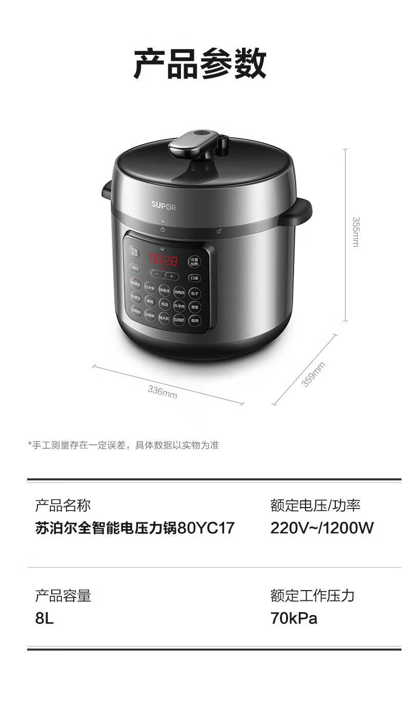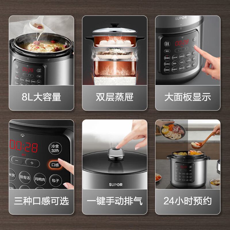 商品名称: 苏泊尔(SUPOR)ZMD安心系列 电压力锅 24小时预约双层蒸屉 8L大容量 大面板SY-80YC17 SY-80YC17/台