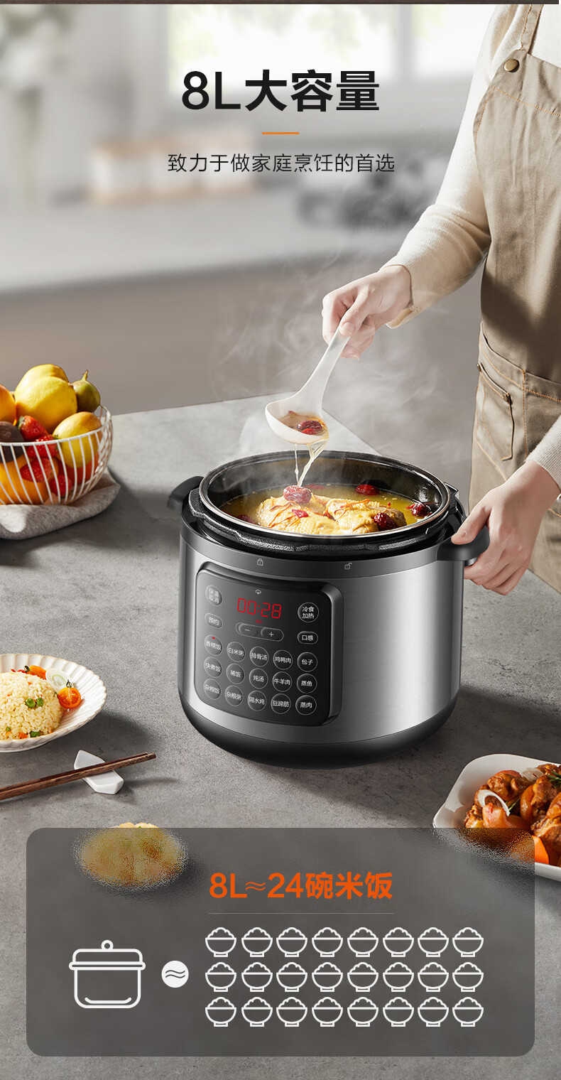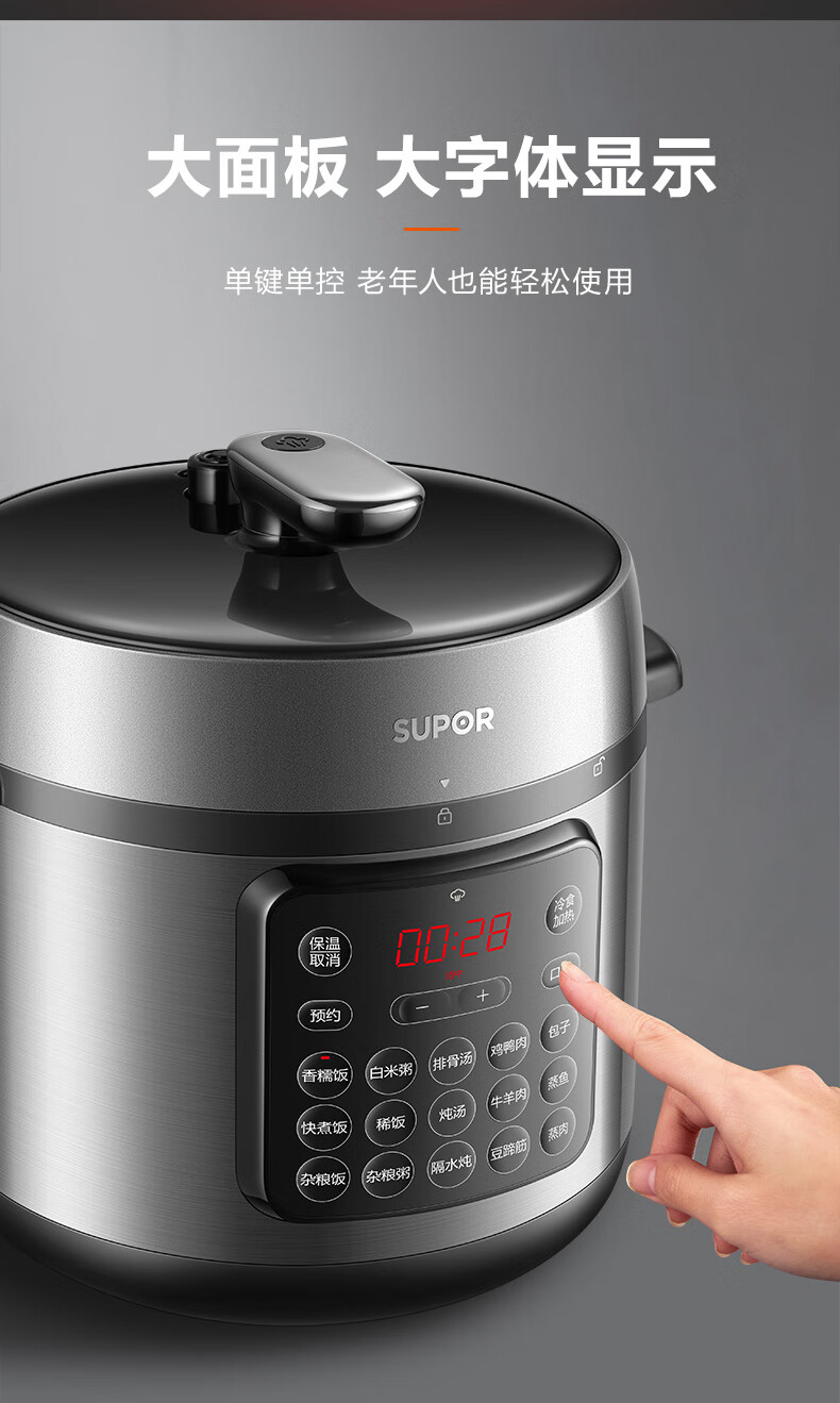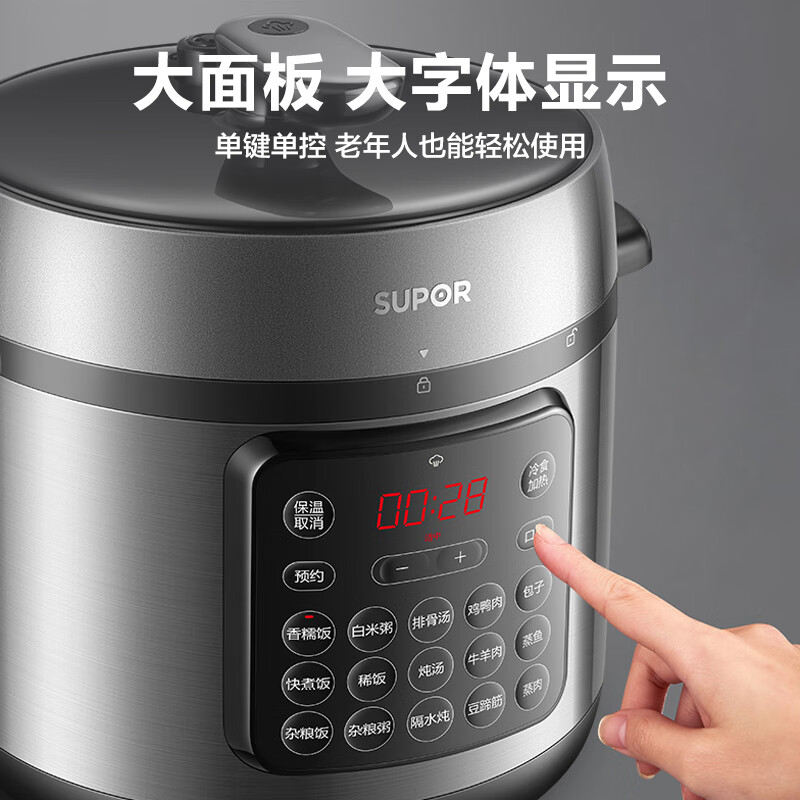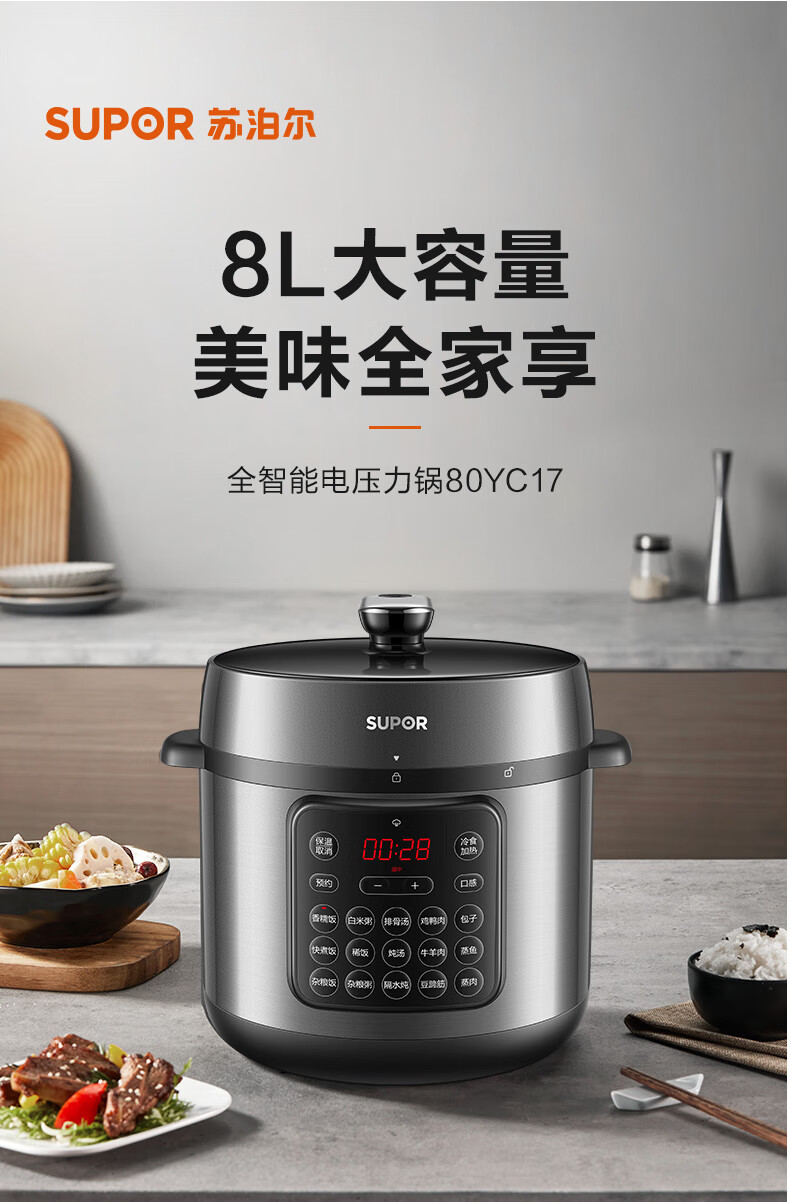 家用电器  > 厨房小电  > 电压力锅  >  苏泊尔/SUPOR  >  苏泊尔(SUPOR)ZMD安心系列 电压力锅 24小时预约双层蒸屉 8L大容量 大面板SY-80YC17 SY-80YC17/台