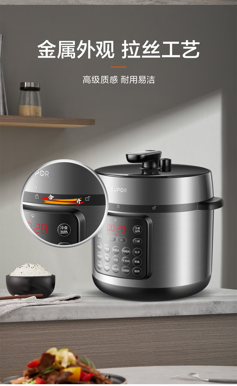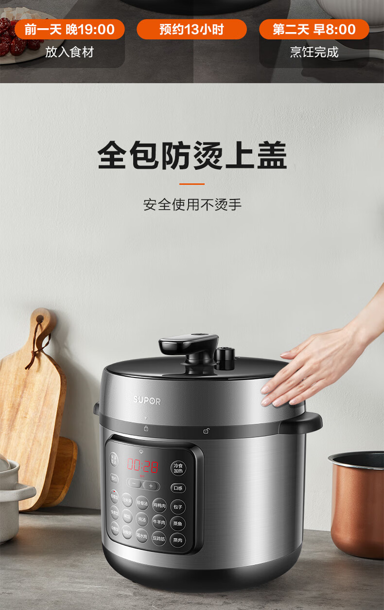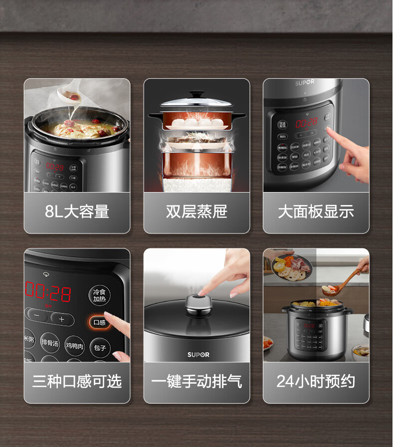 家用电器  > 厨房小电  > 电压力锅  >  苏泊尔/SUPOR  >  苏泊尔(SUPOR)ZMD安心系列 电压力锅 24小时预约双层蒸屉 8L大容量 大面板SY-80YC17 SY-80YC17/台