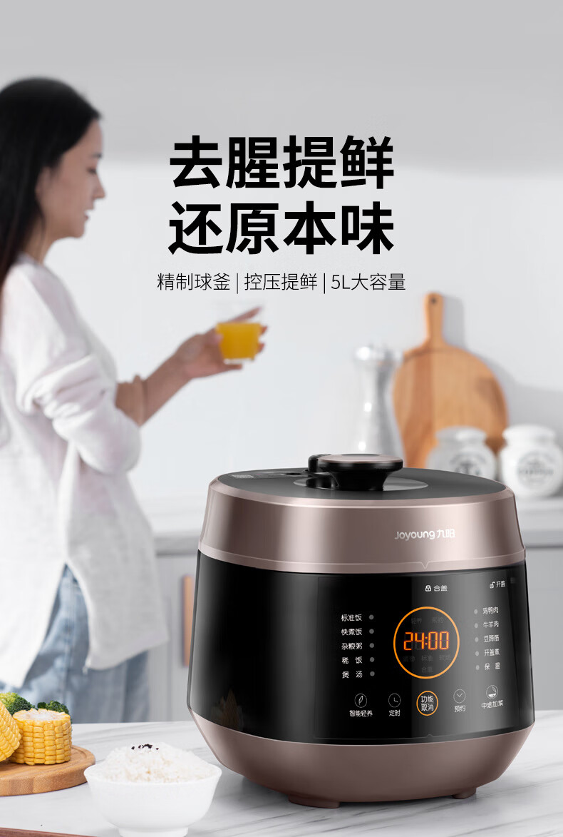 家用电器  > 厨房小电  > 电压力锅  >  九阳/Joyoung  >  九阳(Joyoung)5L智能家用4-5人一锅双胆多功能电压力锅压力煲铜匠大火营养煮高压锅预约定时Y-50C82 Y-50C82/台